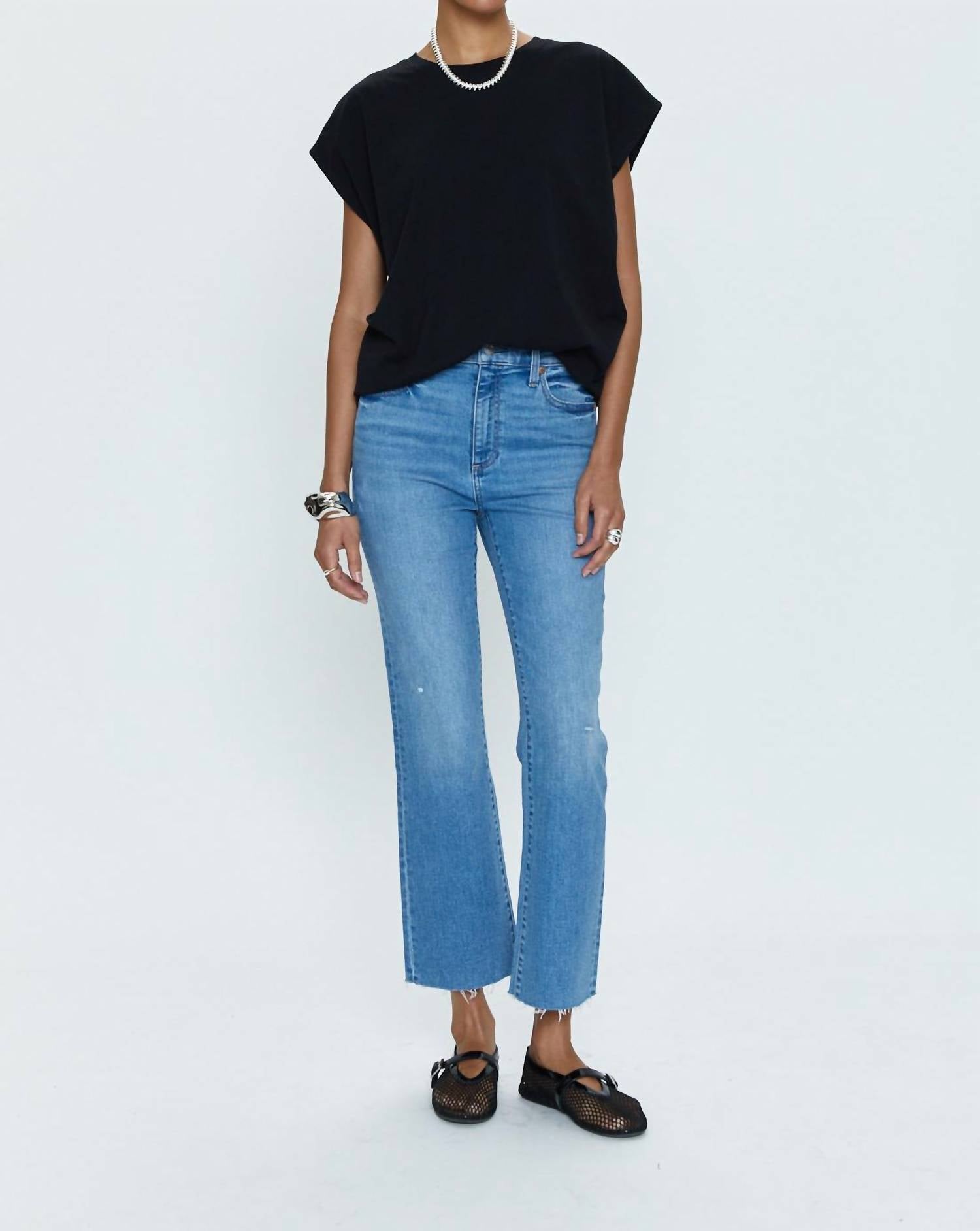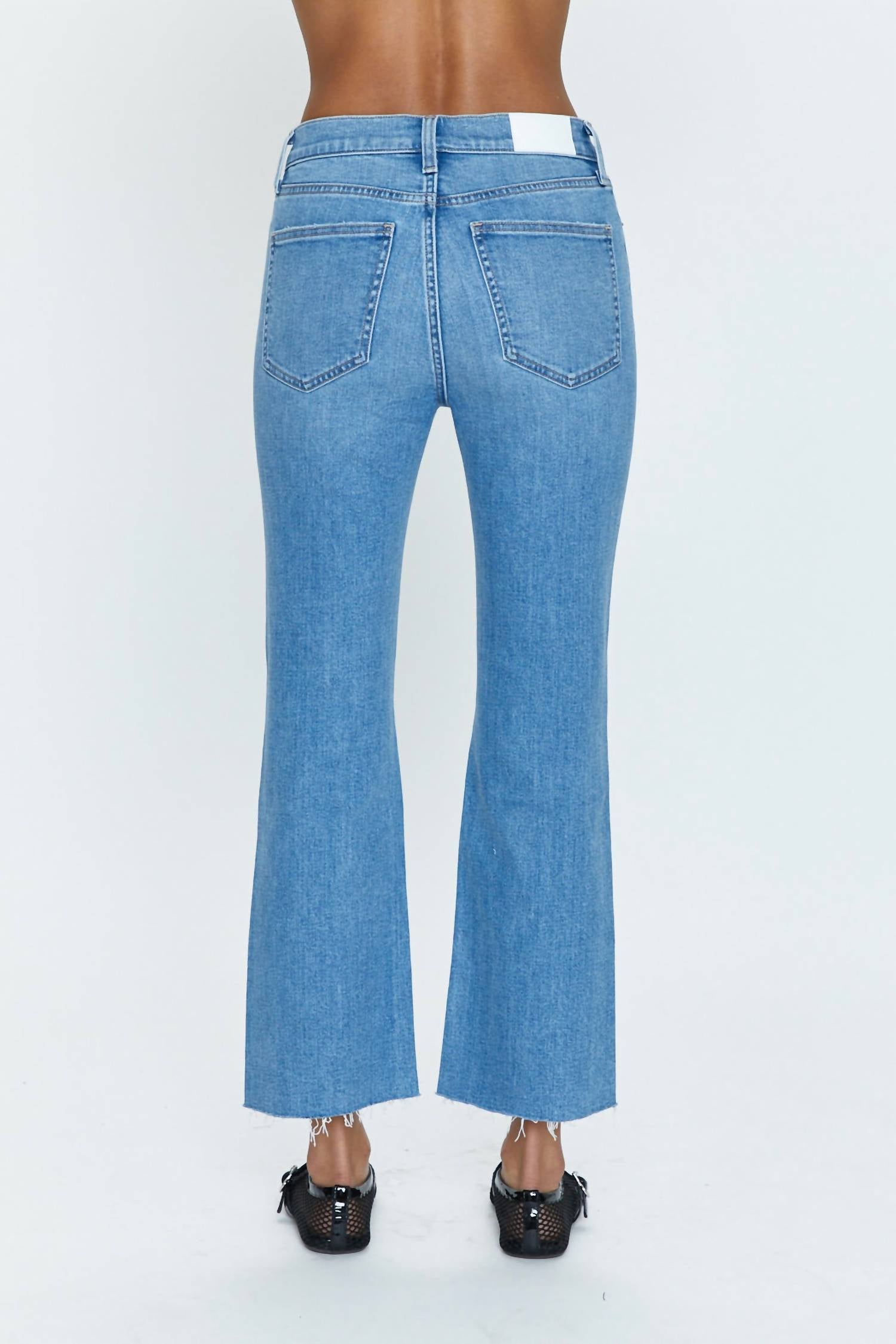 Fique na moda com estas calças boot cut estilosas e com caimento perfeito. A combinação perfeita de conforto e estilo, você vai querer usá-las a estação toda! Saia com estilo com a Bota Crop Lennon High Rise da PISTOLA, um jeans bootcut deslumbrante na cor azul Langford Vintage. Com uma costura interna de 68 cm e cós de 28 cm, este jeans se ajusta perfeitamente dos quadris aos joelhos antes de abrir para um efeito elegante e proporcional. Confeccionado em uma mistura de algodão com 94% algodão, 5% poliéster e 1% elastano, oferece conforto e durabilidade. O fechamento é sem costuras com botão e a lavagem é fácil, com recomendação de lavagem com água fria para maior durabilidade. A modelo tem 1,75 m e veste tamanho 26.
