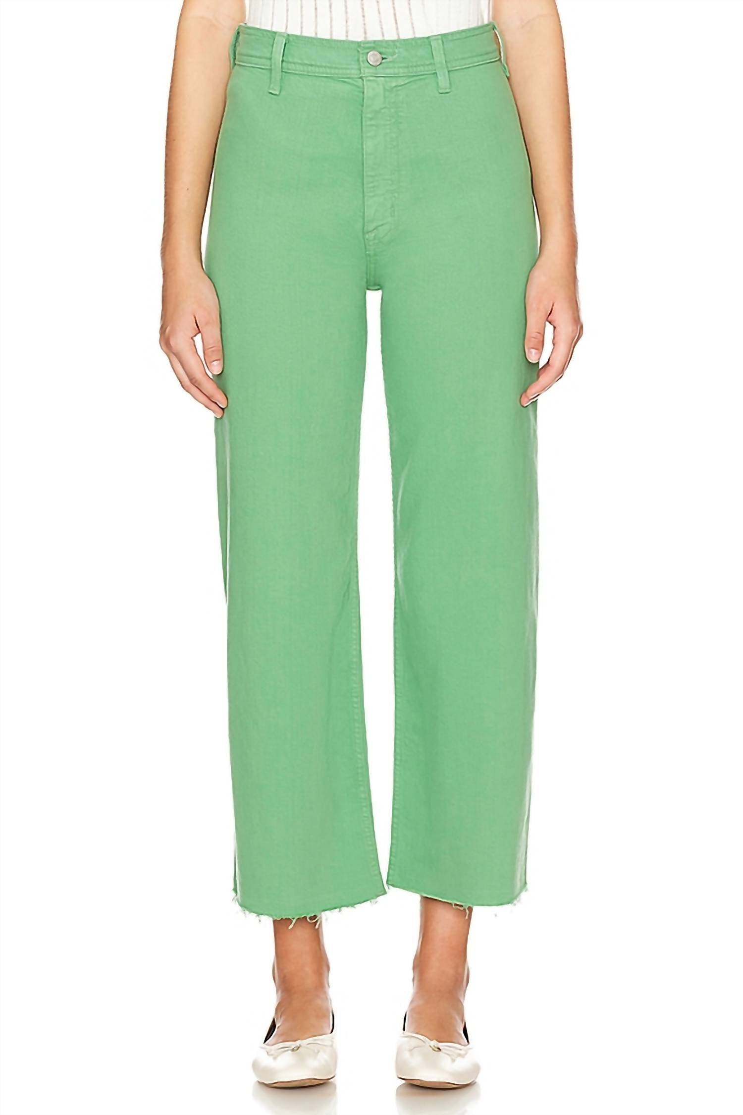 Eleve o seu estilo jeans com a Calça Penny Crop Wide Leg da PISTOLA, confeccionada em um verde abacate marcante. Esta calça jeans de cintura alta apresenta um design sem costuras, garantindo uma aparência elegante e reforçada por um stretch confortável. Composição: 99% algodão, 1% elastano. Fechamento: Botão. Instruções de cuidado: Lavar à máquina. As bainhas com corte tesoura e o corte cropped de perna larga proporcionam uma silhueta ousada e descontraída, perfeita para o seu streetwear de primavera e ocasiões de viagem.