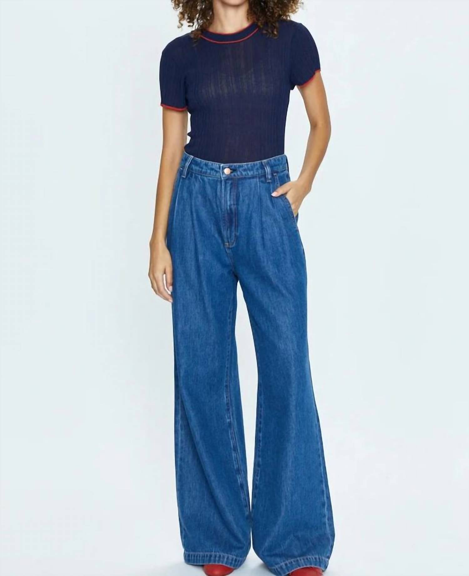 Conheça a Calça Victoria Wide Leg da PISTOLA, uma adição estilosa a qualquer guarda-roupa na rica tonalidade Midnight Sun. Desenhada com cintura alta e caimento solto, esta calça wide leg oferece um toque moderno ao jeans clássico. Confeccionada em 62% algodão e 38% algodão lyocell, esta calça possui fecho de zíper e bolsos traseiros embutidos inspirados em calças. Perfeita para as tendências de streetwear, ela é importada e pode ser lavada na máquina e seca na secadora, com uma costura interna de 81 cm para um visual chique e despojado.