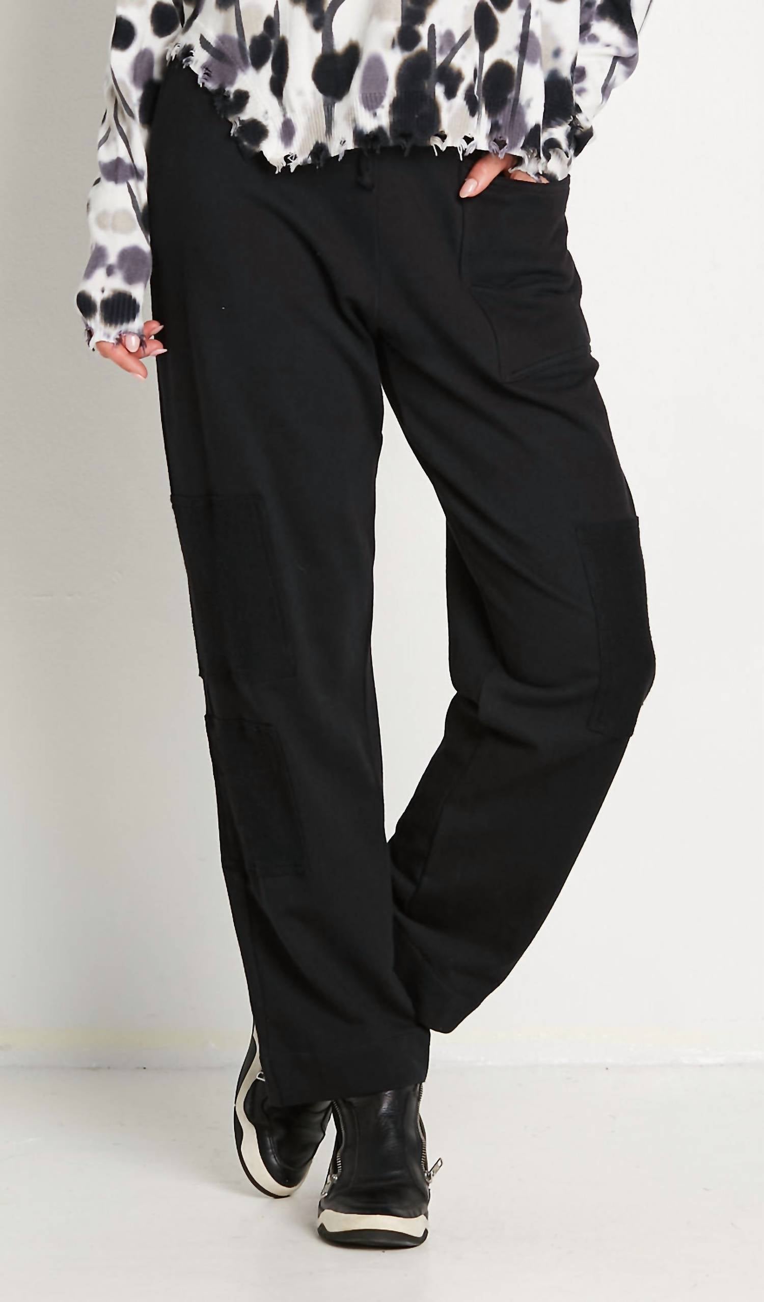 Discover the PATCH PANT by PLANET by Lauren G., a chic addition to your streetwear collection in classic black. These solid, straight-leg pants are crafted from 100% cotton for a comfortable fit and feature a convenient pull-on closure. Designed with pockets for added functionality, they are perfect for a dinner party or Thanksgiving gathering. Care instructions include machine wash cold and line dry, making them easy to maintain.