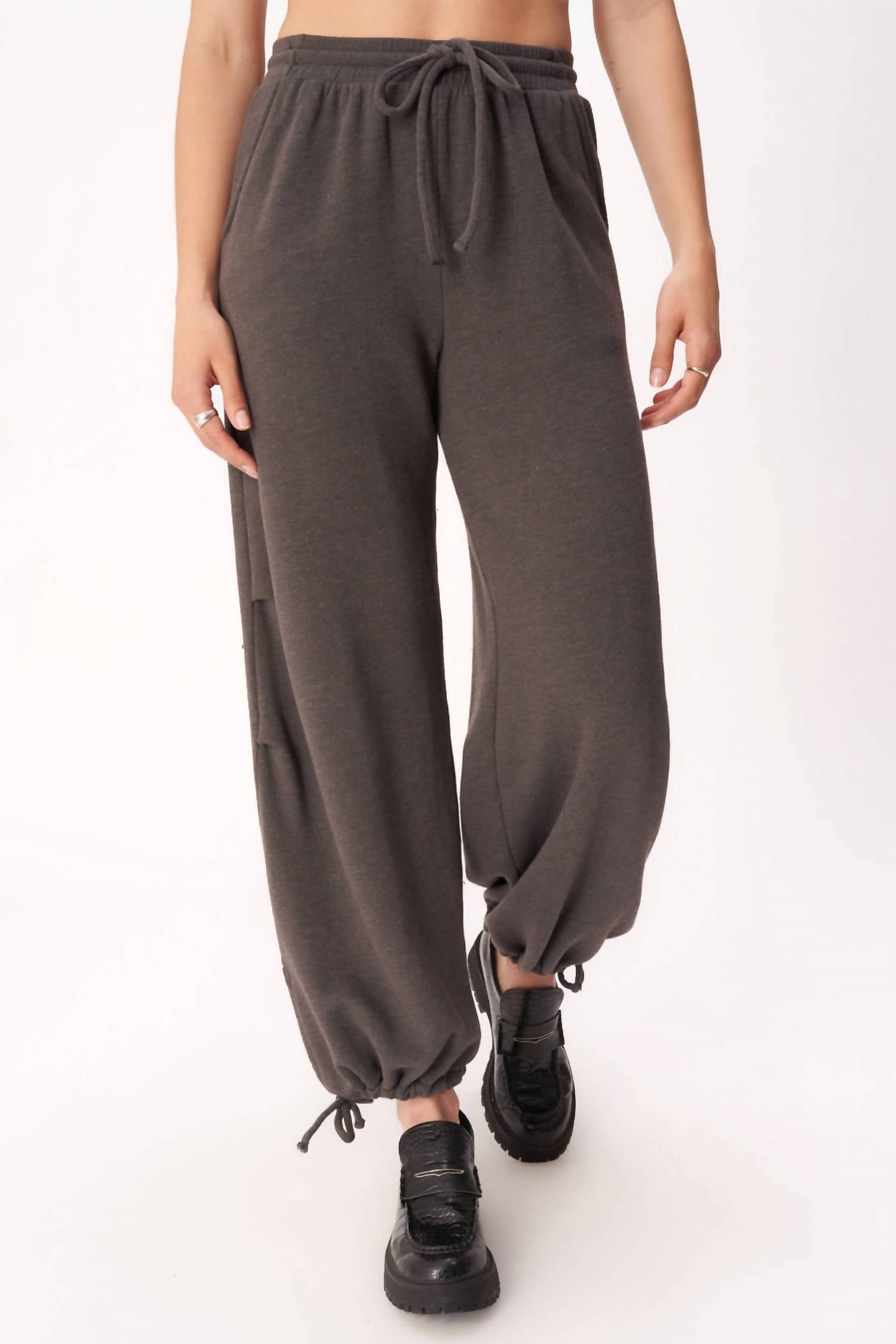 Não é preciso ir à academia para usar esta calça jogger descolada. Caimento relaxado. Silhueta paraquedas. Cós elástico com cordão ajustável. Bolsos laterais. Punho ajustável. Fabricação em moletom francês de gramatura média. Vitória está usando tamanho extra pequeno. 69% algodão, 31% poliéster. Lavar à máquina com água fria. Lavar do avesso com cores semelhantes. Não usar alvejante. Secar na horizontal. Passar a ferro com água fria, se necessário. Medidas (retiradas do tamanho P): Cintura: 35 cm, Gancho frontal: 30 cm, Gancho traseiro: 40 cm, Entrepernas: 77 cm.