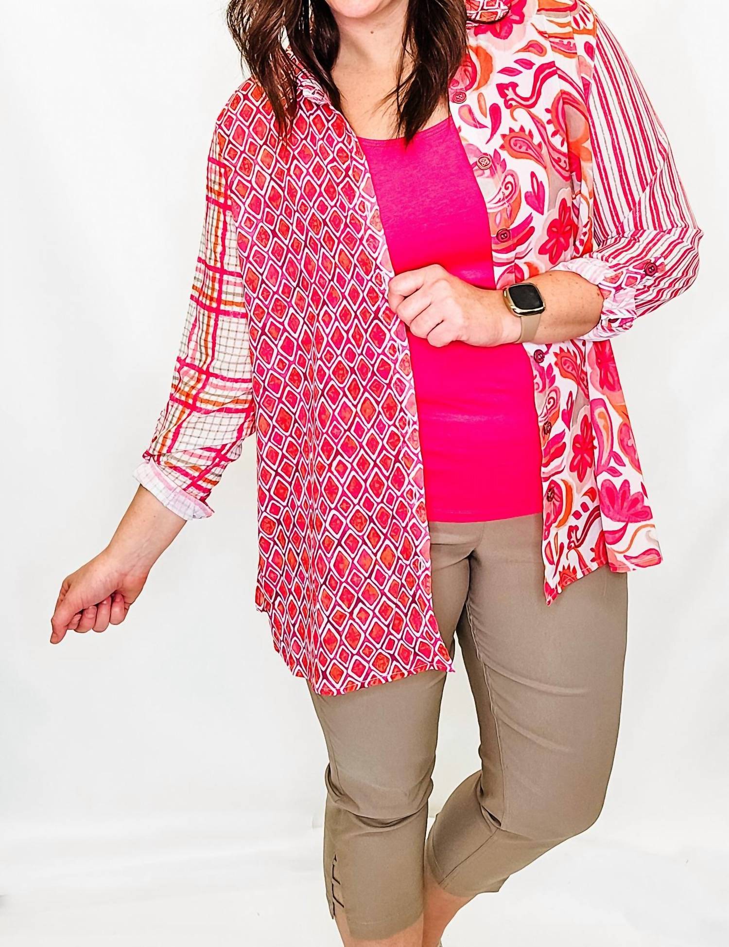 Mantenha-se na moda e exiba seu gosto impecável com estas calças cropped adaptáveis ​​e estilosas. O comprimento perfeito para usar com suas mules favoritas. Você vai adorar o caimento! Apresentamos a Calça Crop com Bainha de 3 Tiras da Slimsation By Multiples, confeccionada para estilo e conforto em uma cor pedra chique. Esta calça, que pode ser vestida, possui comprimento cropped e bolsos frontais práticos, oferecendo praticidade e um design elegante. Feita com uma mistura de 74% rayon, 21% nylon e 5% elastano, ela oferece um painel de controle flexível para suavizar e afinar sua silhueta com tecnologia de recuperação de forma. Lavar à máquina com água fria e cores semelhantes. Com costura interna de 61 cm para um ajuste perfeito.