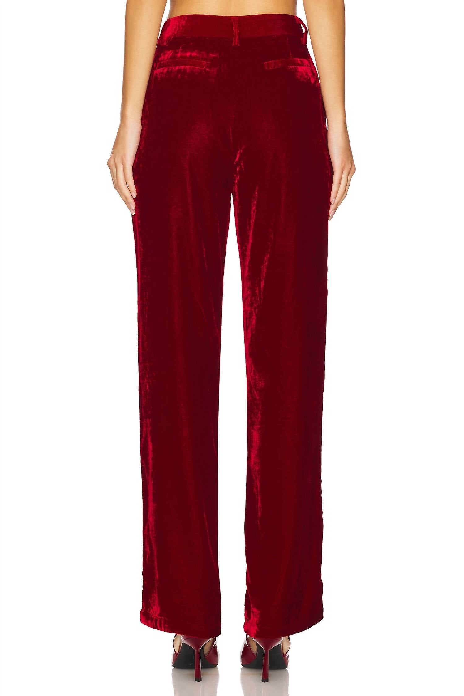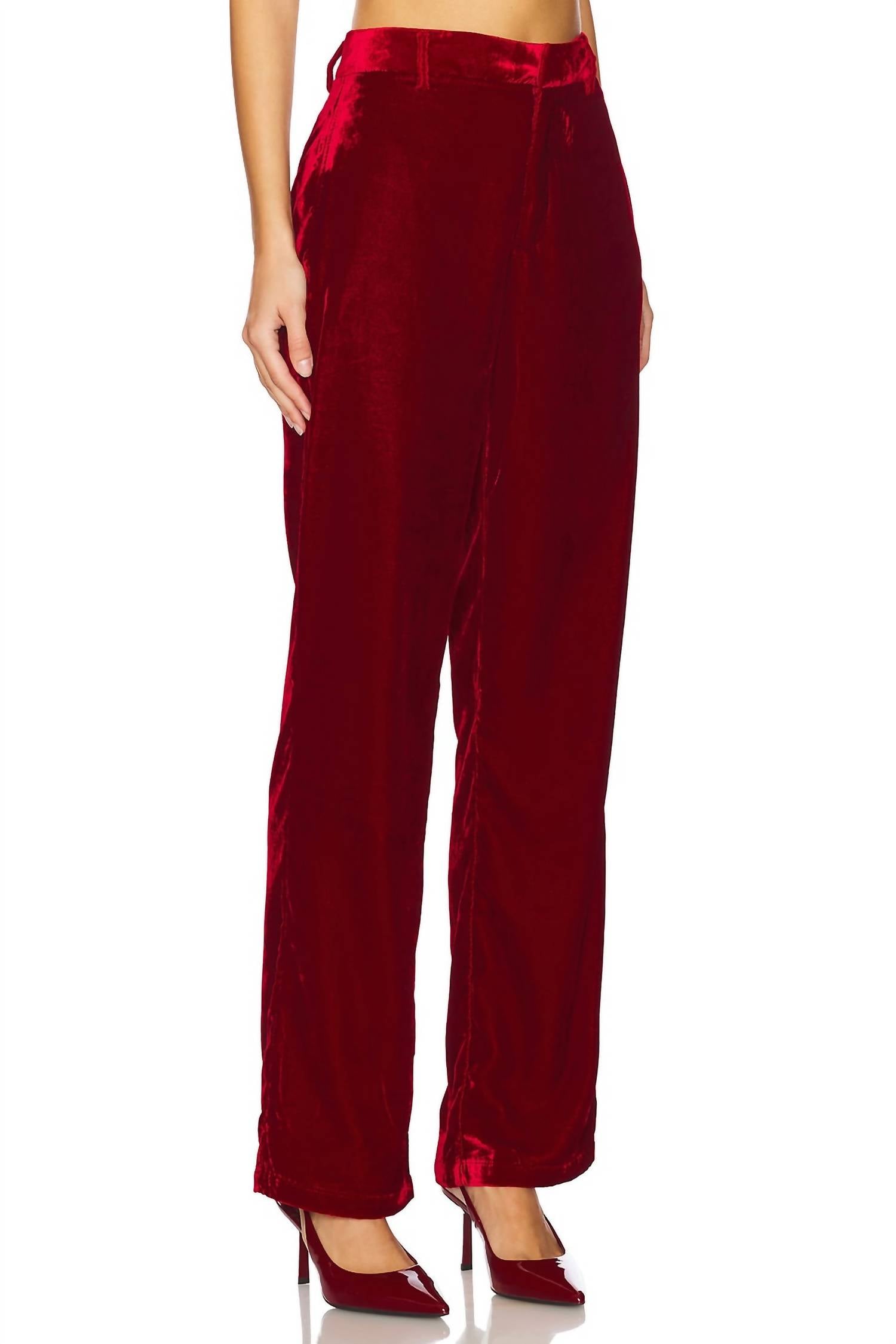 A straightleg pant that workes season after season. Dress these up with your favorite blouse or keep it casual with your go-to tee. Elevate your wardrobe with the Mercer Pant by Steve Madden, crafted for style and comfort in a plush red velvet fabric. These straight-leg pants, featuring a button closure, are made entirely from polyester, offering durability and a beautiful drape. Designed for a sophisticated appeal, they include two functional side pockets for convenience. Care for this chic piece with a hand wash to maintain its elegant allure, perfect for spring events or workwear.