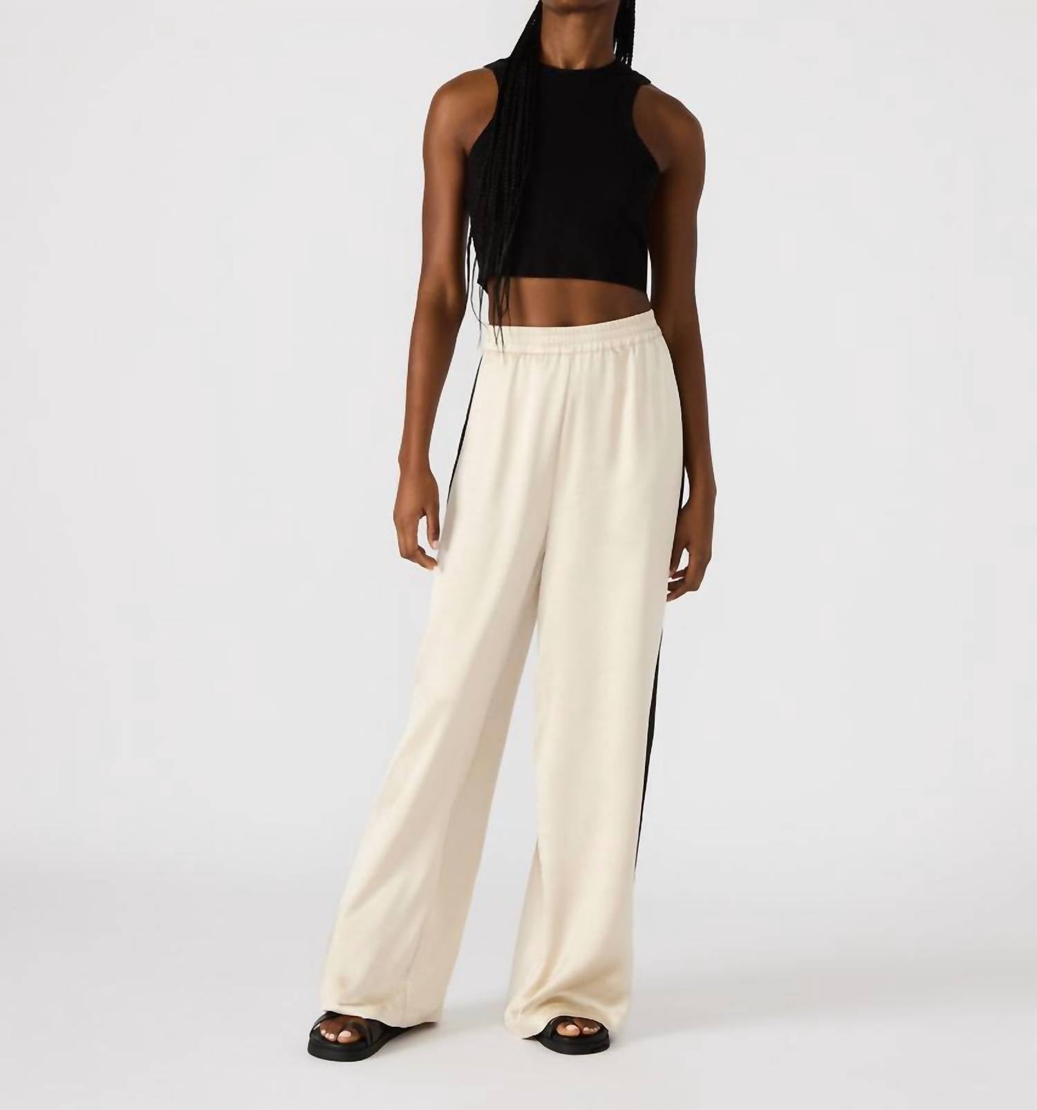 A straightleg pant that workes season after season. Dress these up with your favorite blouse or keep it casual with your go-to tee. Introducing the Moxie Straight Leg Pant by Steve Madden, a chic addition to your wardrobe in a sophisticated cream color. These women's pants feature a sleek pull-on design with a comfortable elastic waistband and a standout contrast panel for a slimming effect. With pockets for convenience and a high rise, regular fit, these pants are crafted from 100% polyester with a straight leg style. Pair them with your favorite top for an effortless minimalist look perfect for spring vacations. Care instructions: Hand wash.