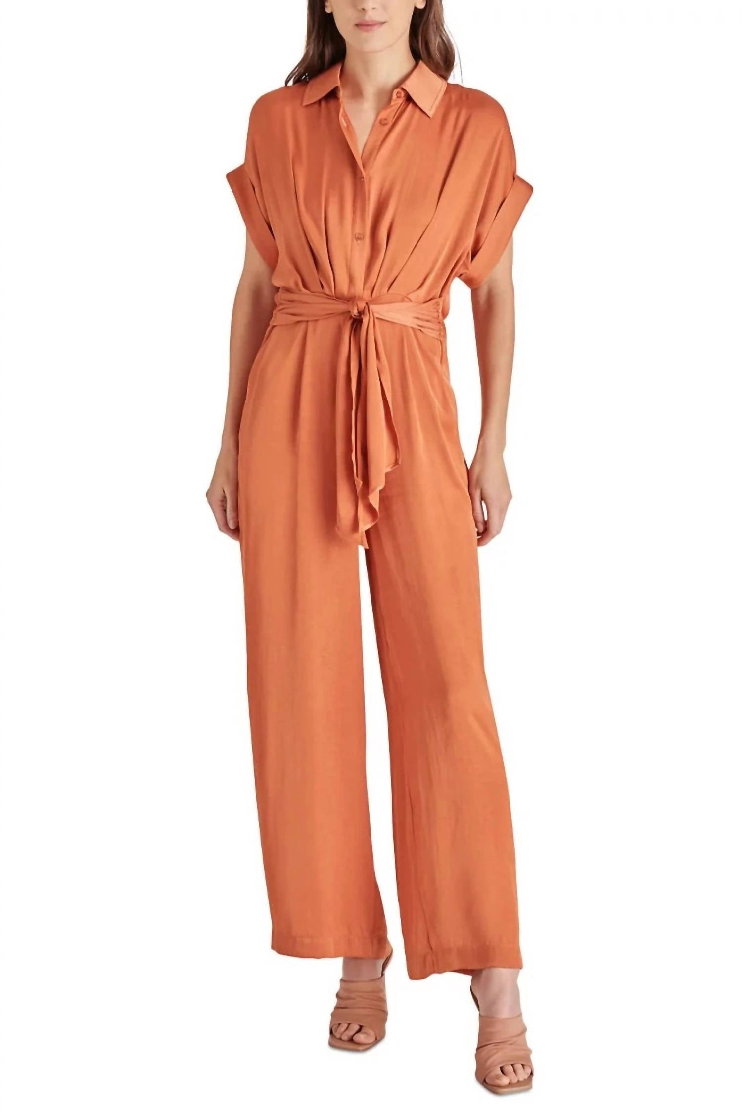 A escolha perfeita de roupa quando você precisa de algo rápido para vestir e ainda quer ter um visual descolado sem esforço. Eleve seu guarda-roupa com o Macacão com Amarração na Cintura da Steve Madden, uma peça atemporal em marrom chique. Confeccionado em 100% poliéster, este macacão estiloso apresenta mangas dolman e um detalhe marcante de amarração frontal. As calças largas e a costura interna de 76 cm oferecem um caimento relaxado, com fecho de botões e gola alta para um toque de sofisticação. Perfeito para qualquer estação, este macacão combina conforto e elegância.