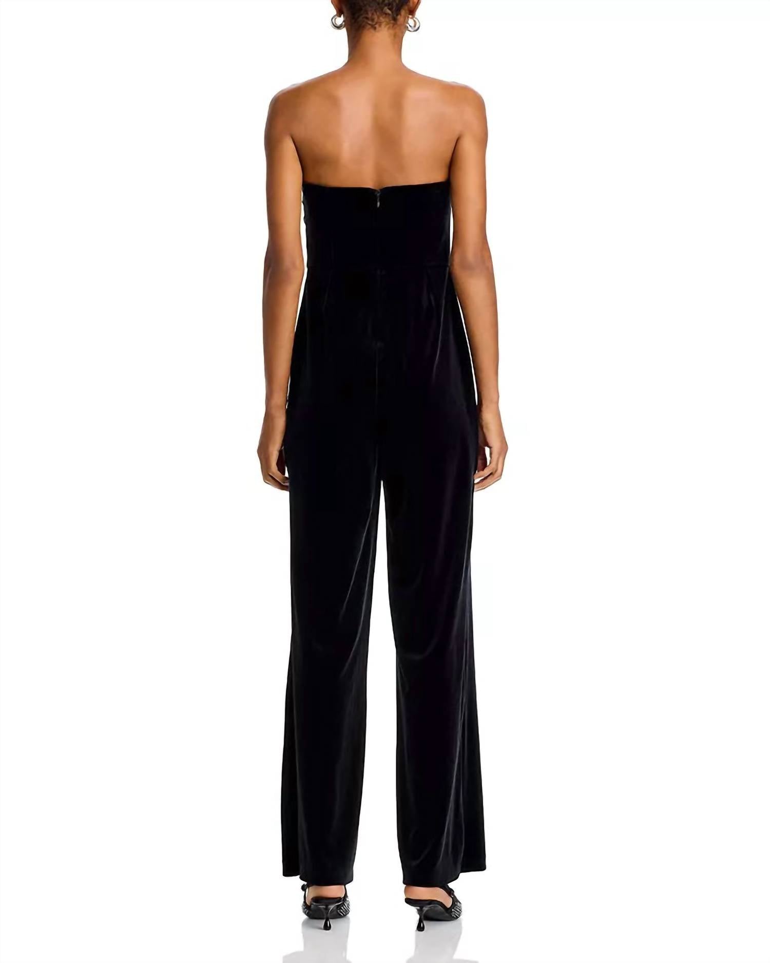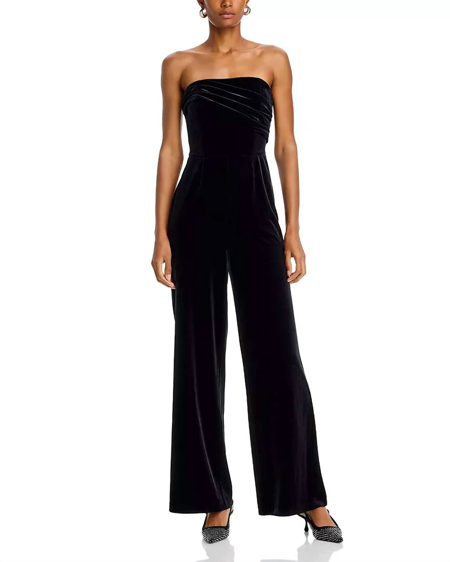 Embrace sophistication with the Steve Madden Wide Leg Jumpsuit, designed for effortless elegance in classic black. This strapless jumpsuit features a straight neck and a draped bodice detail, adding a touch of refinement to any outfit. Constructed from 91% polyester and 9% spandex with a 100% polyester lining, it ensures a comfortable fit. Made with side pockets and a back zip closure, this imported piece is both practical and stylish. Ideal for holiday parties, it features a wide-leg silhouette with a 12.5" rise, 32" inseam, and a 24" leg opening. Care is simple with machine wash maintenance, and the model wears a size small with measurements of 5'10" height, 33.5" bust, 23.5" waist, 34.5" hips.