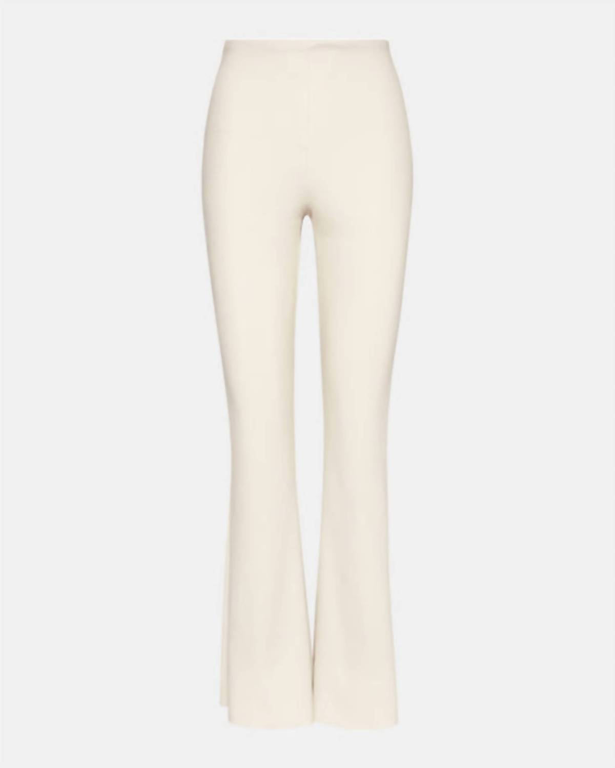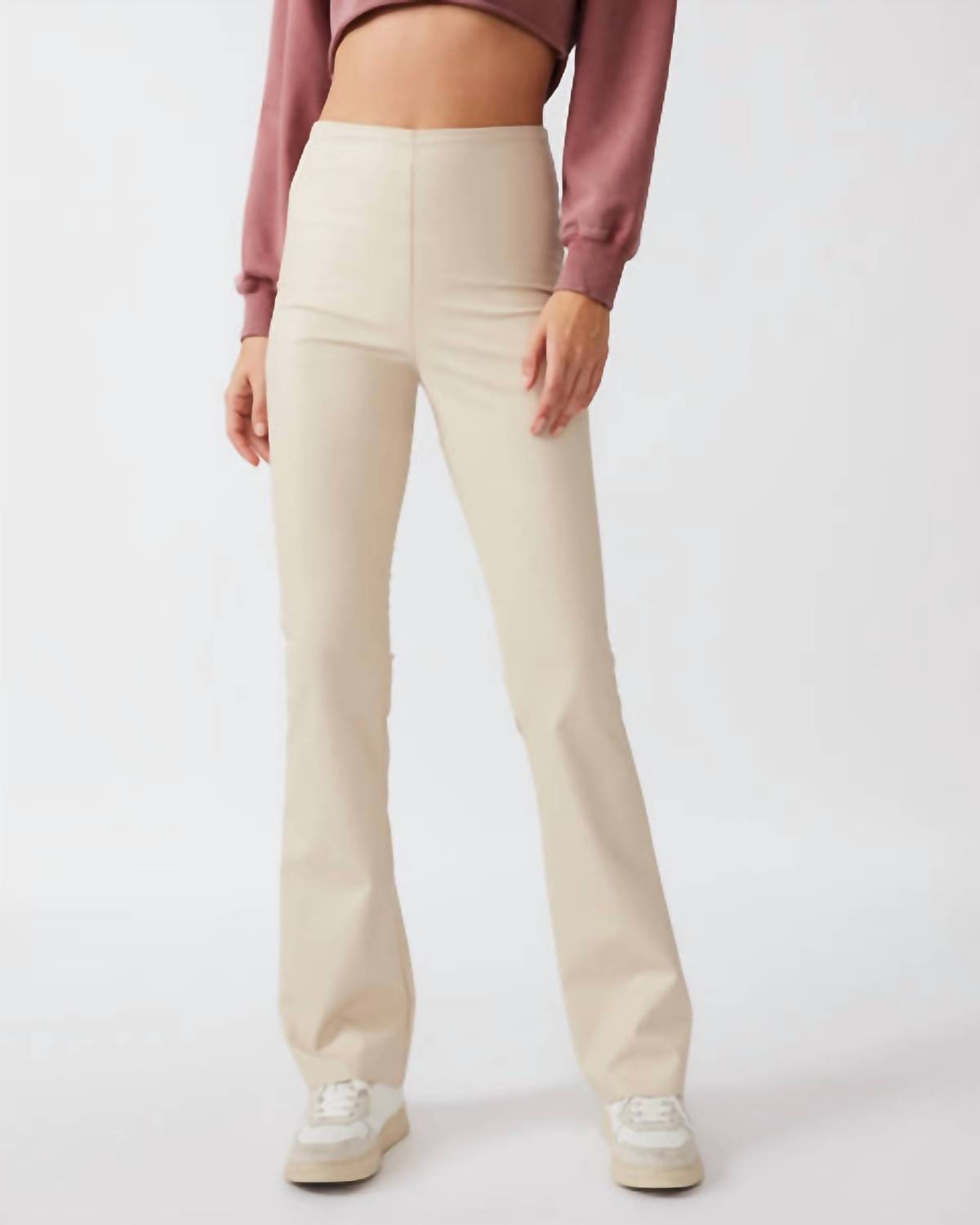 Calça flare em couro sintético com elastano. Modelo pull-on. Acabamento texturizado amassado. Forro interno sem costura. Comprimento: 112 cm. Limpeza com pano úmido. 100% poliuretano.