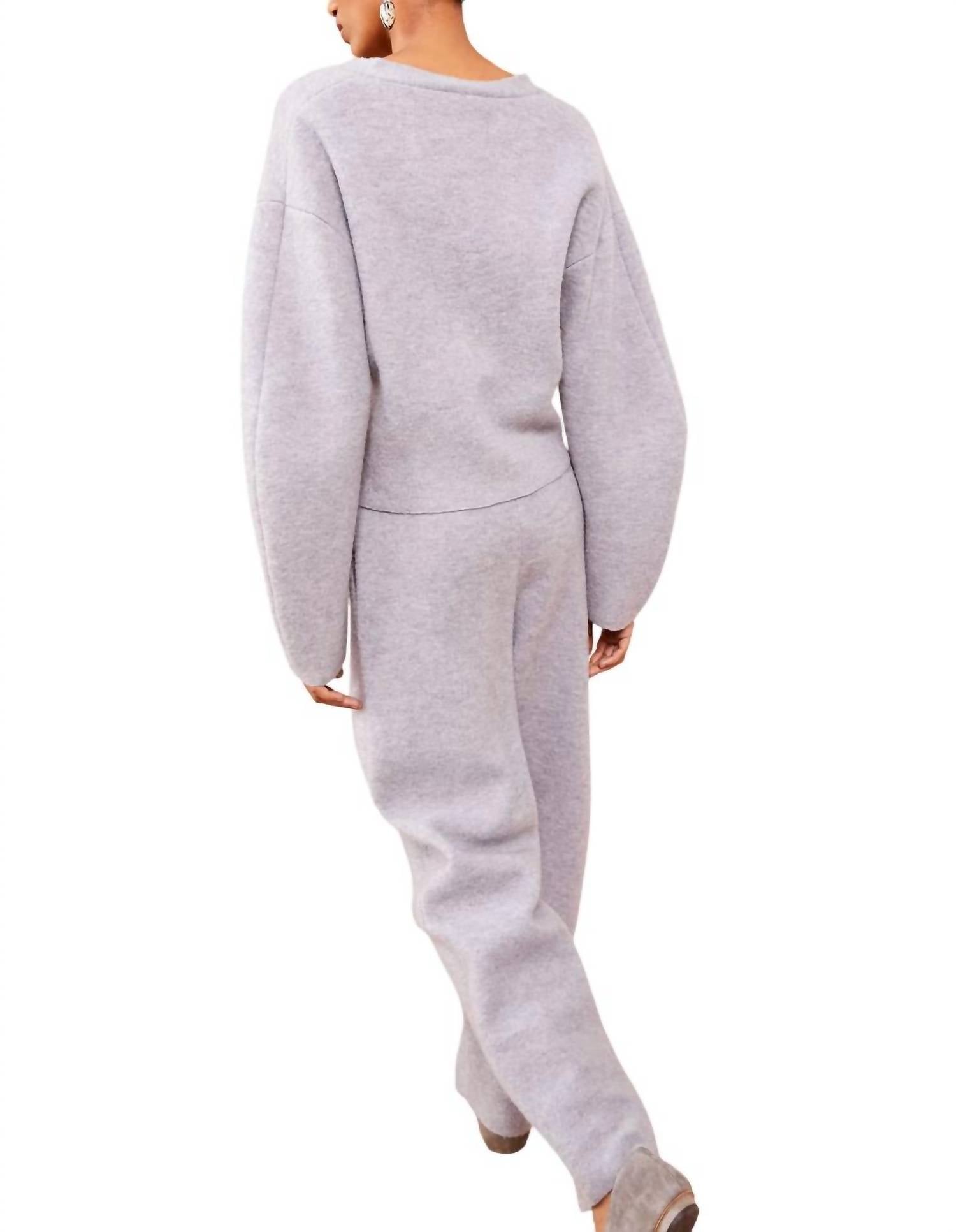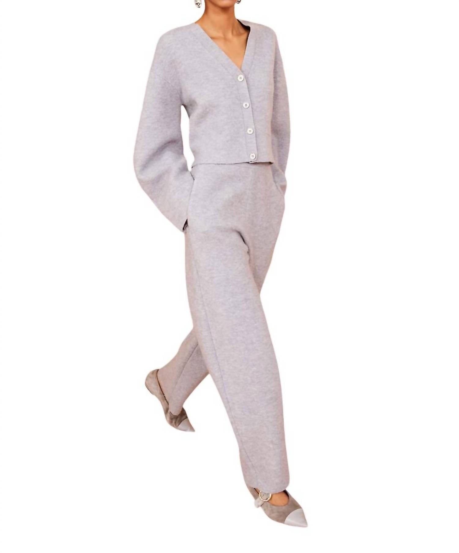 A Calça Delphine é feita de lã merino feltrada em um tom sereno de cinza mesclado. Esta calça tem uma silhueta aerodinâmica e envolvente, com perna afunilada e bolsos laterais. Composição: 100% lã. Altura da modelo: 1,78 m.