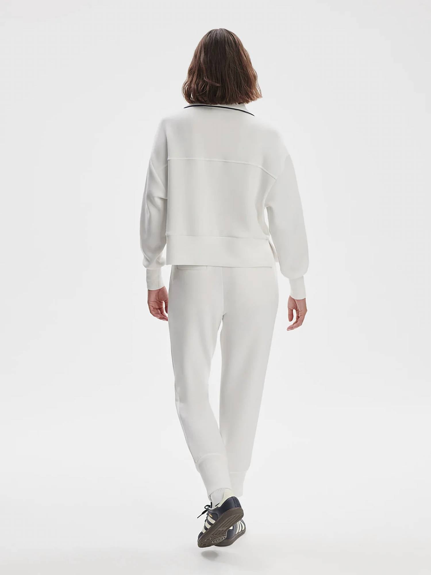 The perfect pant for running around town and looking cool while doing it. Discover the Slim Cuff Pant 25" by VARLEY, a perfect fusion of comfort and style designed for women. Crafted in a 72% Viscose, 23% Polyester, and 5% Elastane blend, these pants boast a slim fit with a cuffed hem, offering a tailored profile. They feature an easy pull-on closure and a practical elasticated waistband with an internal drawcord for a personalized fit, paired with a tapered leg design. Ideal for the athleisure trend, these solid white pants are easy to care for: simply machine wash and lay flat to dry.