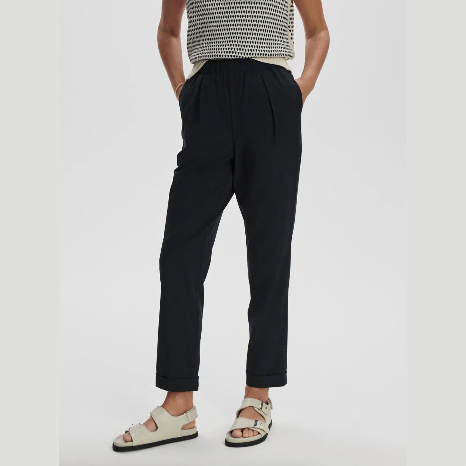 This straightleg pant is both stylish and comfortable. Did we mention the fit is perfection? Introducing the Women's Alana Slim Tapered Cuff Pant by VARLEY, crafted for both versatility and comfort. These pants feature a pull-on closure and a mid-rise, tapered leg design, with turn-up cuffs for added style. Made from 86% Recycled Polyester and 14% Elastane, they promise a lightweight feel perfect for travel. Care: Machine wash cool on a gentle cycle, do not tumble dry, cool iron inside out. Size S dimensions: Front Rise: 11", Waist: 13.7", Inseam: 27".