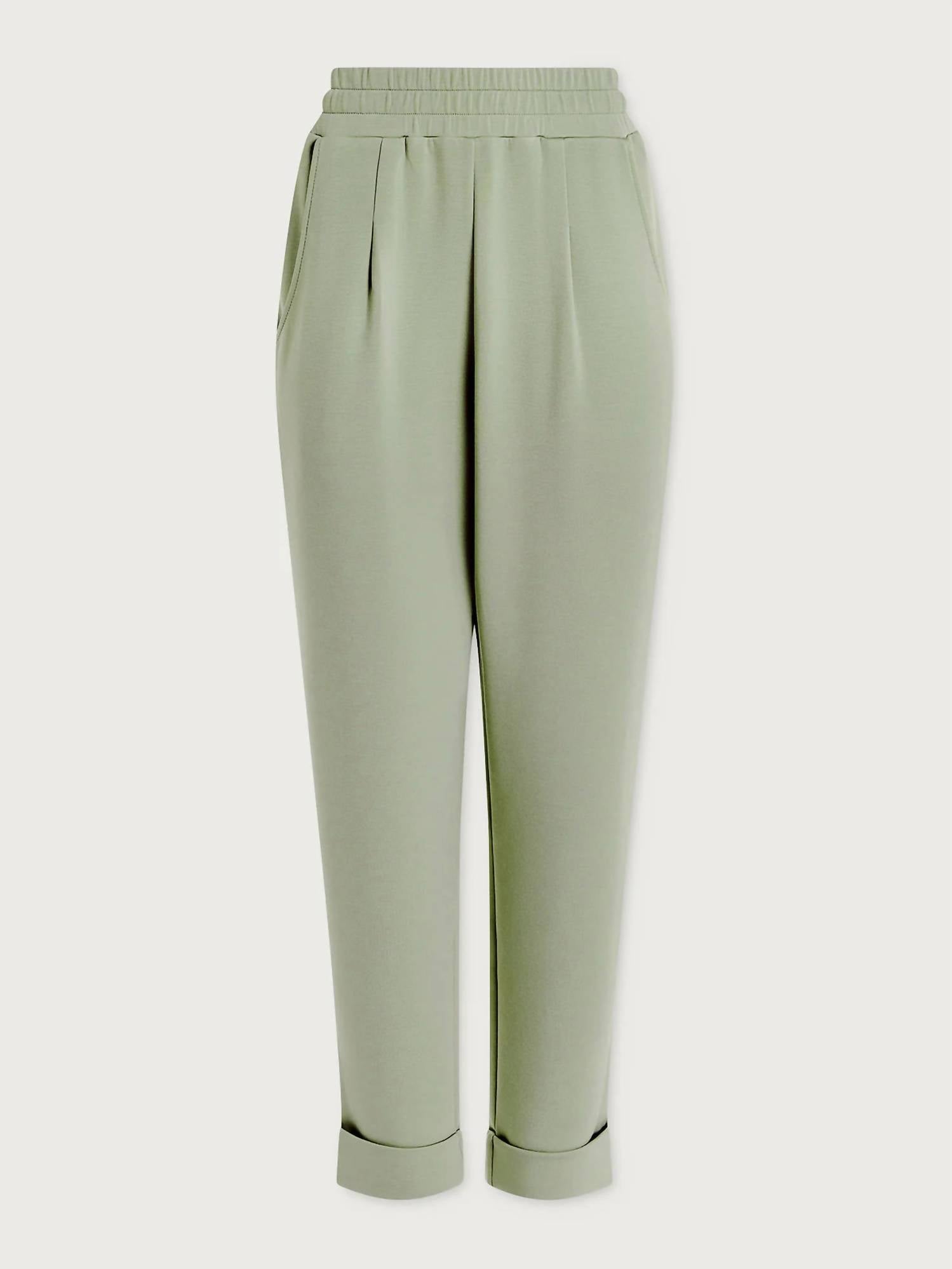 Introducing the Women's Rolled Cuff Pant by Varley, styled in a chic Snow Sage hue for a trendy streetwear look. These straight leg pants offer a sleek silhouette with a pull-on closure for ultimate ease and style. Perfect for spring vacations, the solid pattern accentuates a minimalist aesthetic. Fabric care instructions are not available, offering flexibility in maintenance.