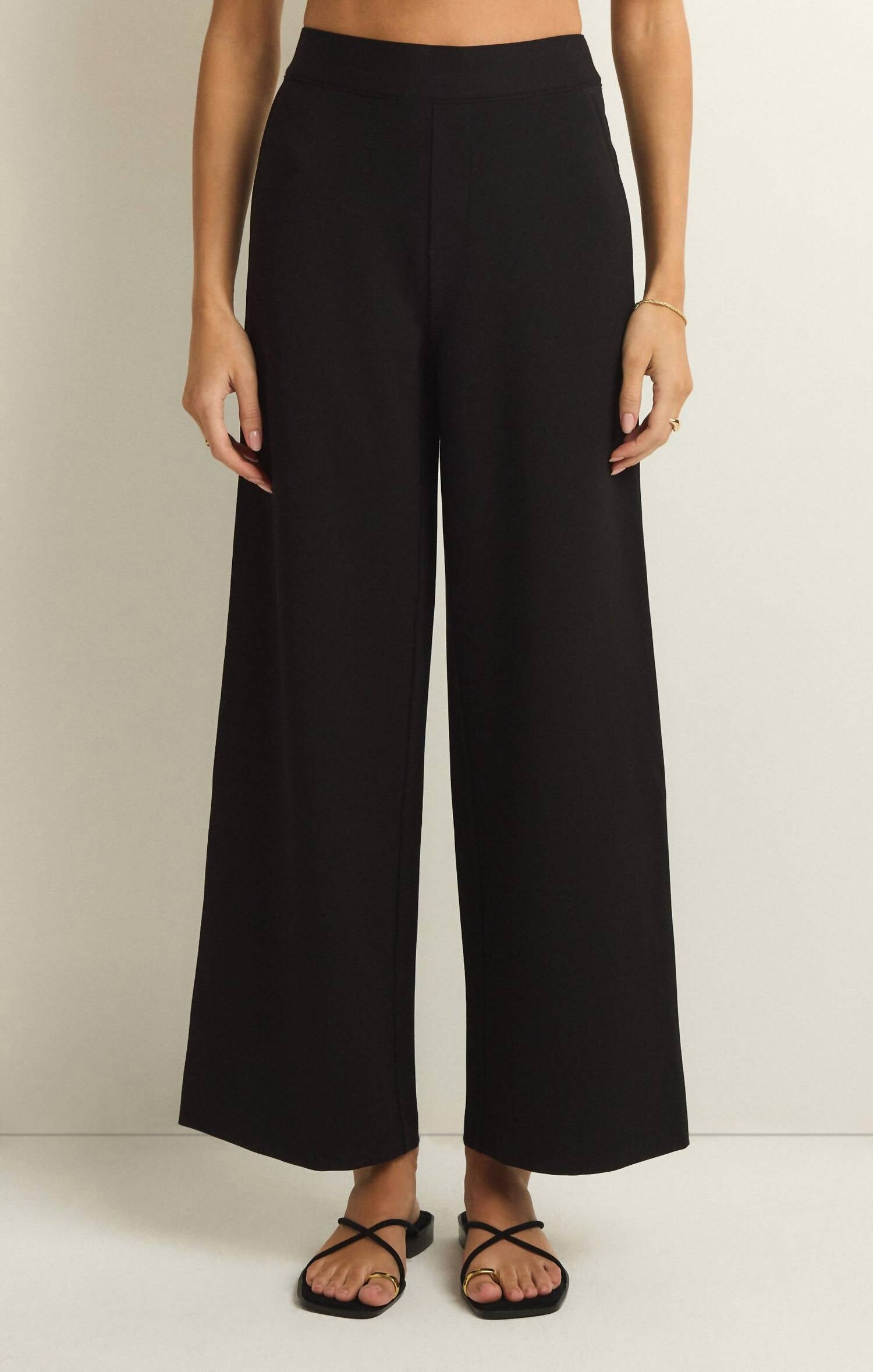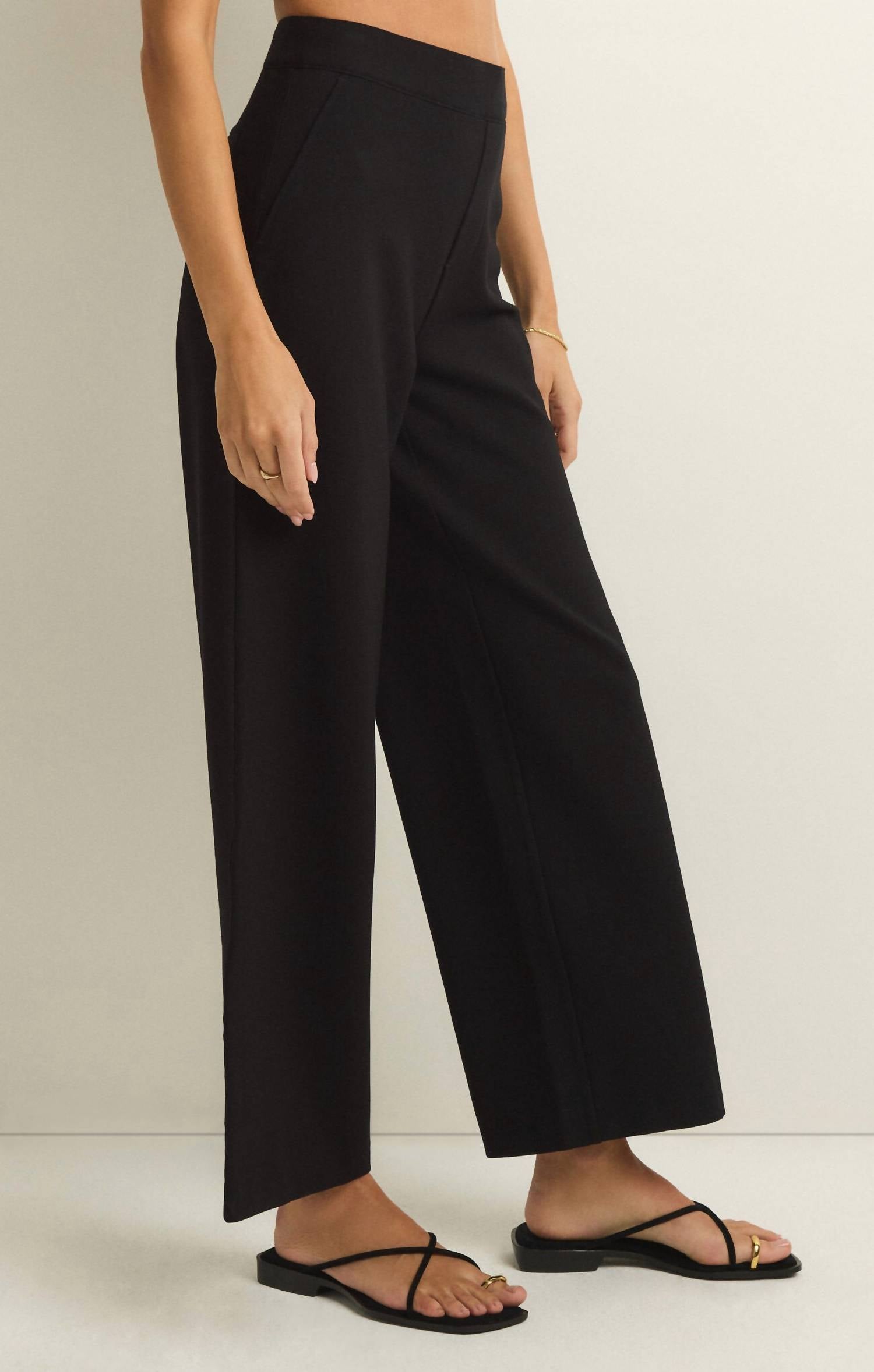 Tecido ponte exclusivo que lhe confere uma sensação estruturada e ao mesmo tempo sofisticada. Caimento regular. Ponte de peso médio: 62% rayon, 33% nylon, 5% elastano. Cintura alta. Comprimento total. Cós elástico.