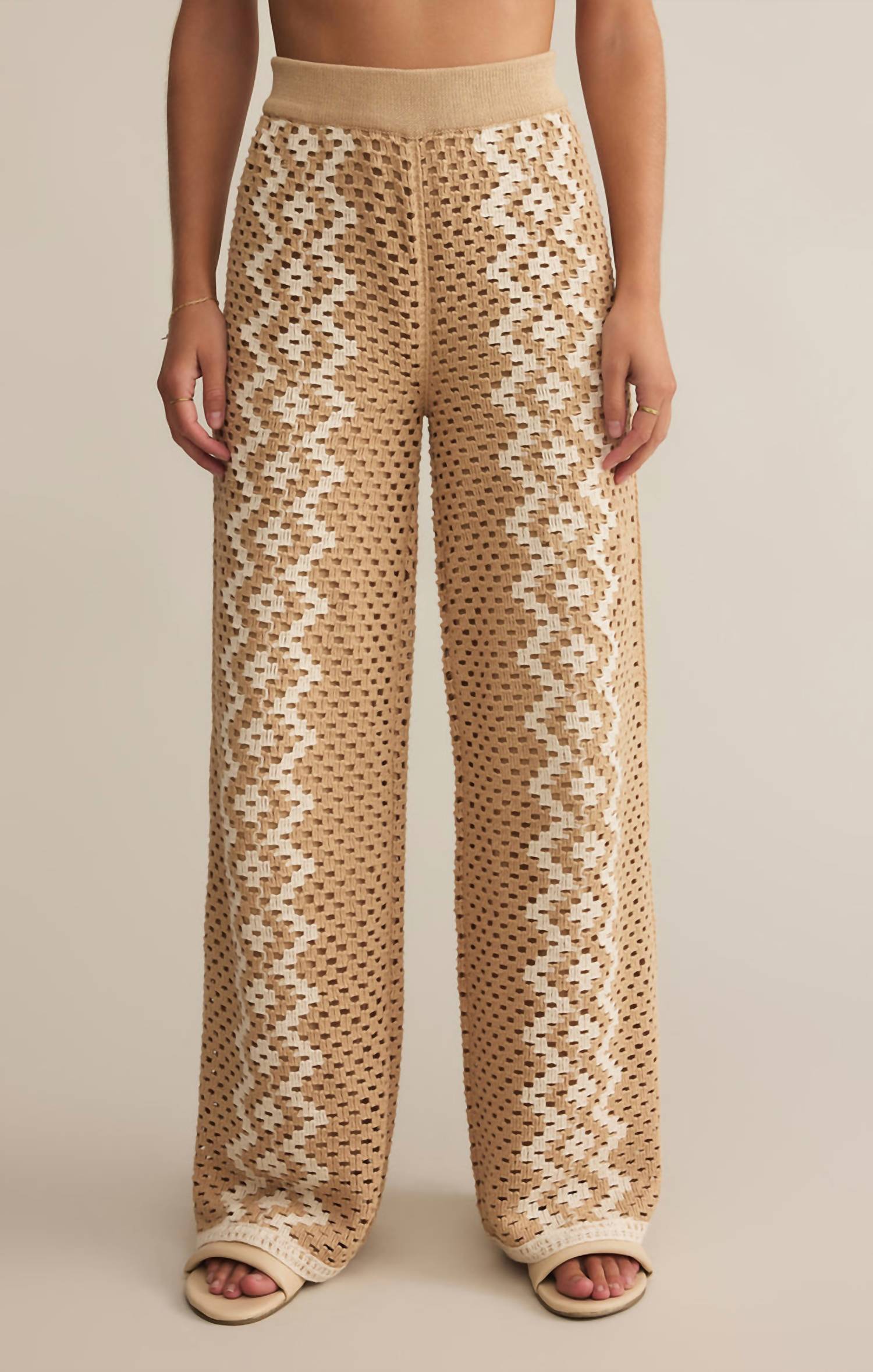Abrace o espírito boho com a Calça de Crochê Loma da Z Supply, com um corte relaxado em tom natural. Confeccionada em malha de crochê 100% algodão, esta calça de cintura média e comprimento até o tornozelo apresenta perna larga e um padrão texturizado estiloso. Com cós elástico e fecho de pressão, oferece praticidade e conforto. As instruções de cuidado recomendam lavar à mão com água fria e modelar para secar na horizontal. A modelo mede 1,78 m e veste tamanho P.