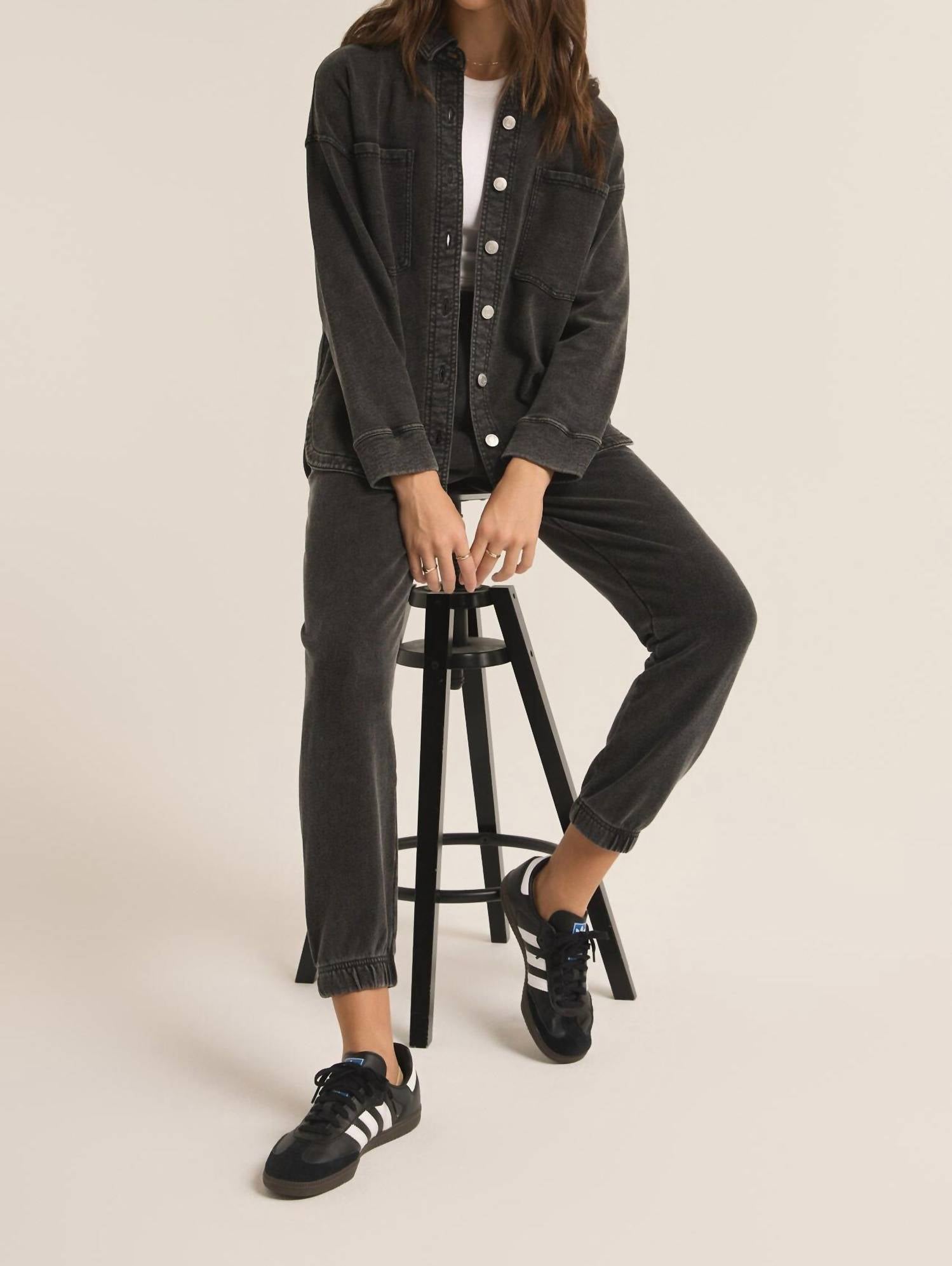 Essas corredoras descoladas não precisam de academia. Eleve o seu estilo casual com a Z Supply Slim Knit Jogger Vintage na cor preta clássica, que oferece a combinação ideal de estilo e conforto. Esta calça jogger apresenta cintura alta e caimento relaxado, realçada por um cós elástico para um ajuste perfeito. Confeccionada em uma mistura de 85% algodão e 15% poliéster, ela conta com bolsos laterais e perna afunilada para um visual elegante. Fechamento: Sem cadarço. Cuidados: Lavar à máquina em água fria, secar no varal, não usar alvejante nem secar na secadora.