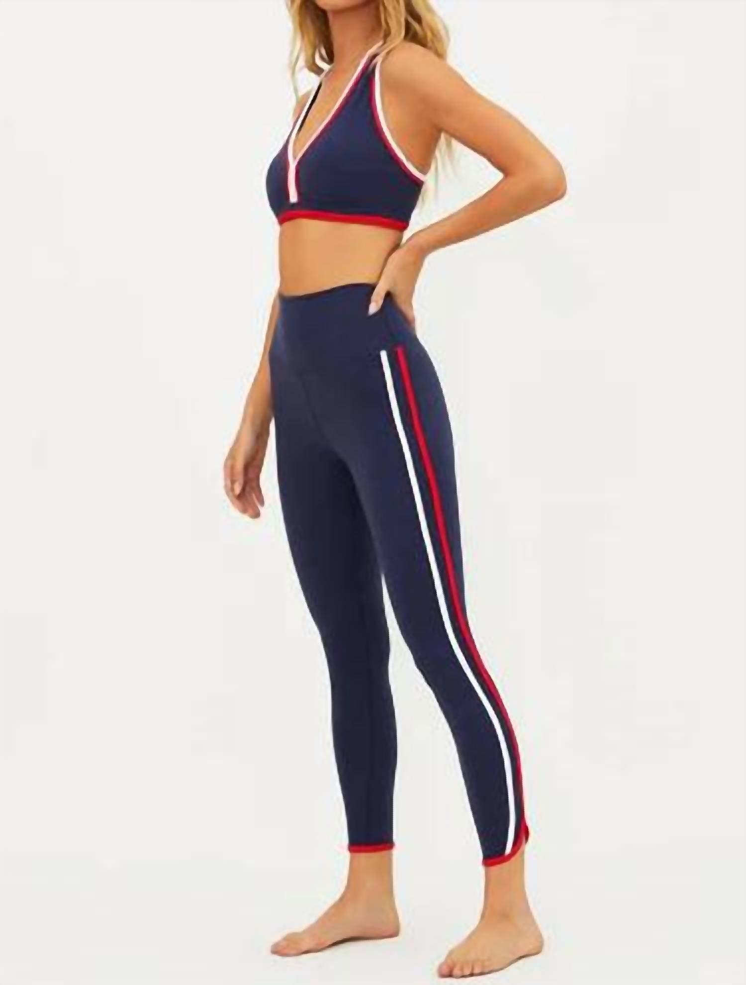 Elevate your workout wardrobe with the Nella Leggings by Beach Riot in a bold Americana Colorblock. These women's leggings feature a 7/8 length with a 25" inseam, offering a sleek skinny leg and slim fit, making them the perfect addition to your summer athleisure collection. Made from an ultra-soft matte core fabric, they blend 70% Nylon and 30% Lycra for moisture-wicking comfort and easy pull-on wear. Care for them with ease: machine wash and tumble dry as needed.