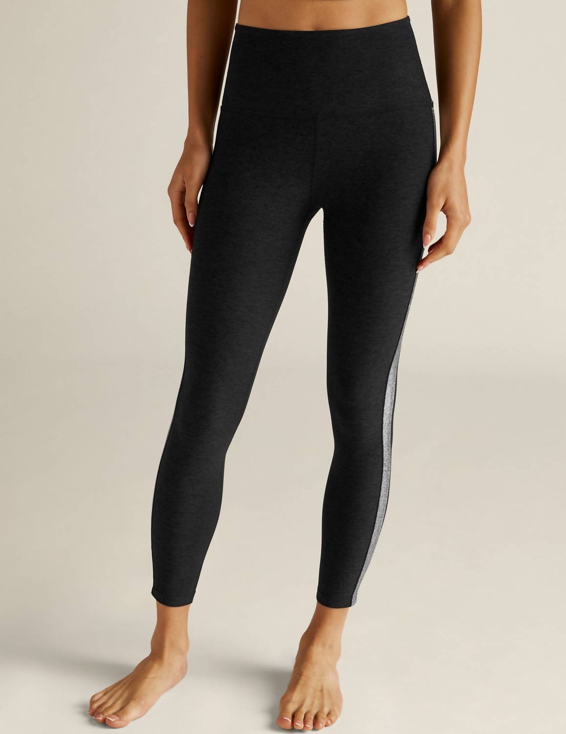 A legging que você não sabia que precisava e não vai querer tirar. Apresentamos a Legging Midi de Cintura Alta BEYOND YOGA Spacedye Shine On na cor Darkest Night, uma combinação perfeita de estilo e conforto para mulheres. Confeccionada em poliéster, esta legging de cintura alta e sem ombros apresenta um fecho pull-on e uma deslumbrante faixa de tuxedo em Lurex, projetada para valorizar todos os tipos de corpo com seu corte slim e modelagem skinny. O comprimento midi se ajusta graciosamente entre a panturrilha e o tornozelo, enquanto o cós de 12,7 cm garante um ajuste confortável. Projetada e fabricada nos EUA, esta legging pode ser lavada na máquina, proporcionando uma rotina de cuidados sem complicações.