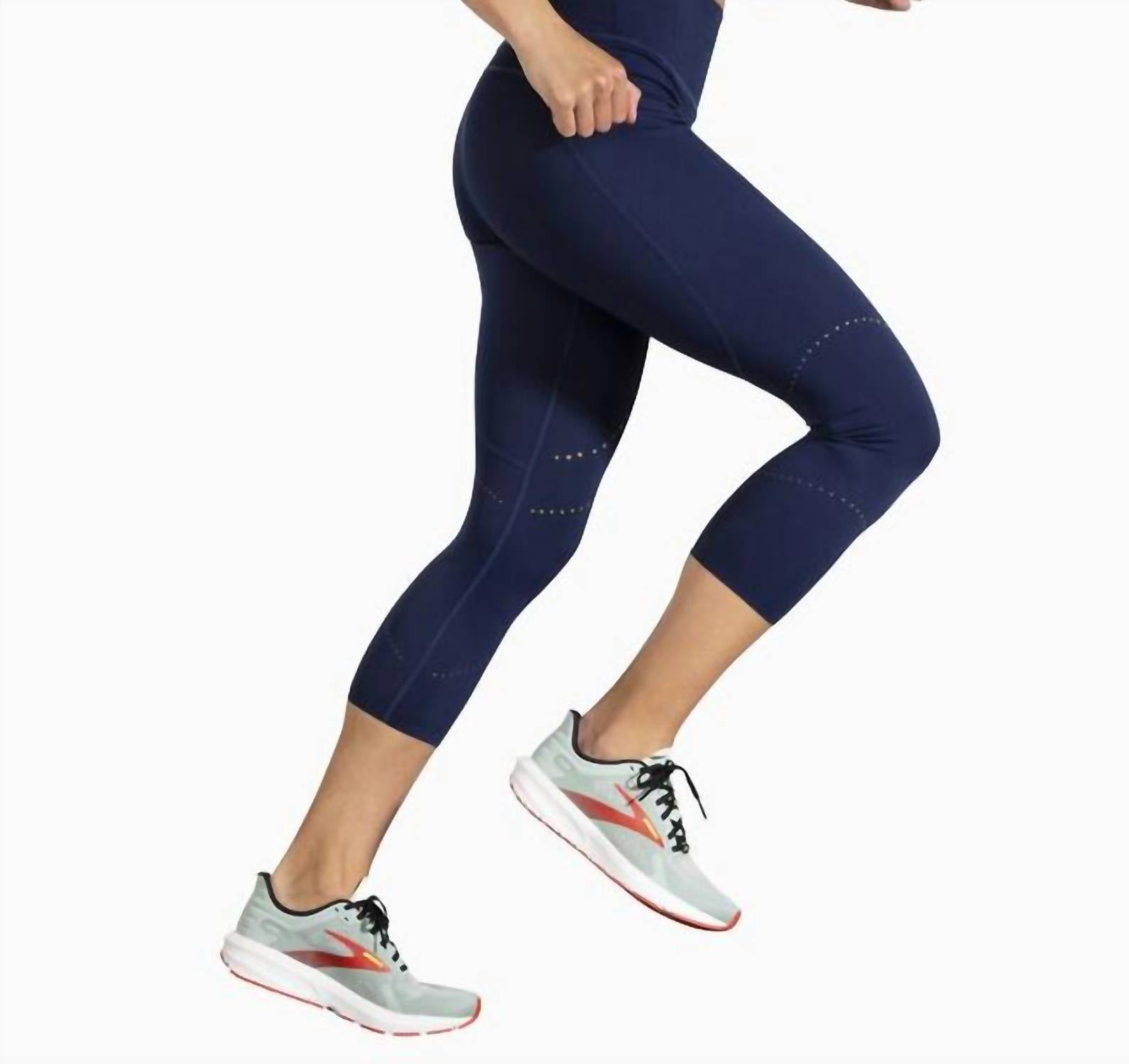 Introducing the Women's Method Leggings by BROOKS, tailored for active pursuits with a classic skinny leg fit. These blue leggings feature a textured pattern, ensuring both style and functionality. Designed with a convenient pull-on closure, they're ideal for fitness and workout sessions in the spring season. Perfectly fitting the athleisure trend, these leggings are a must-have for any active wardrobe.