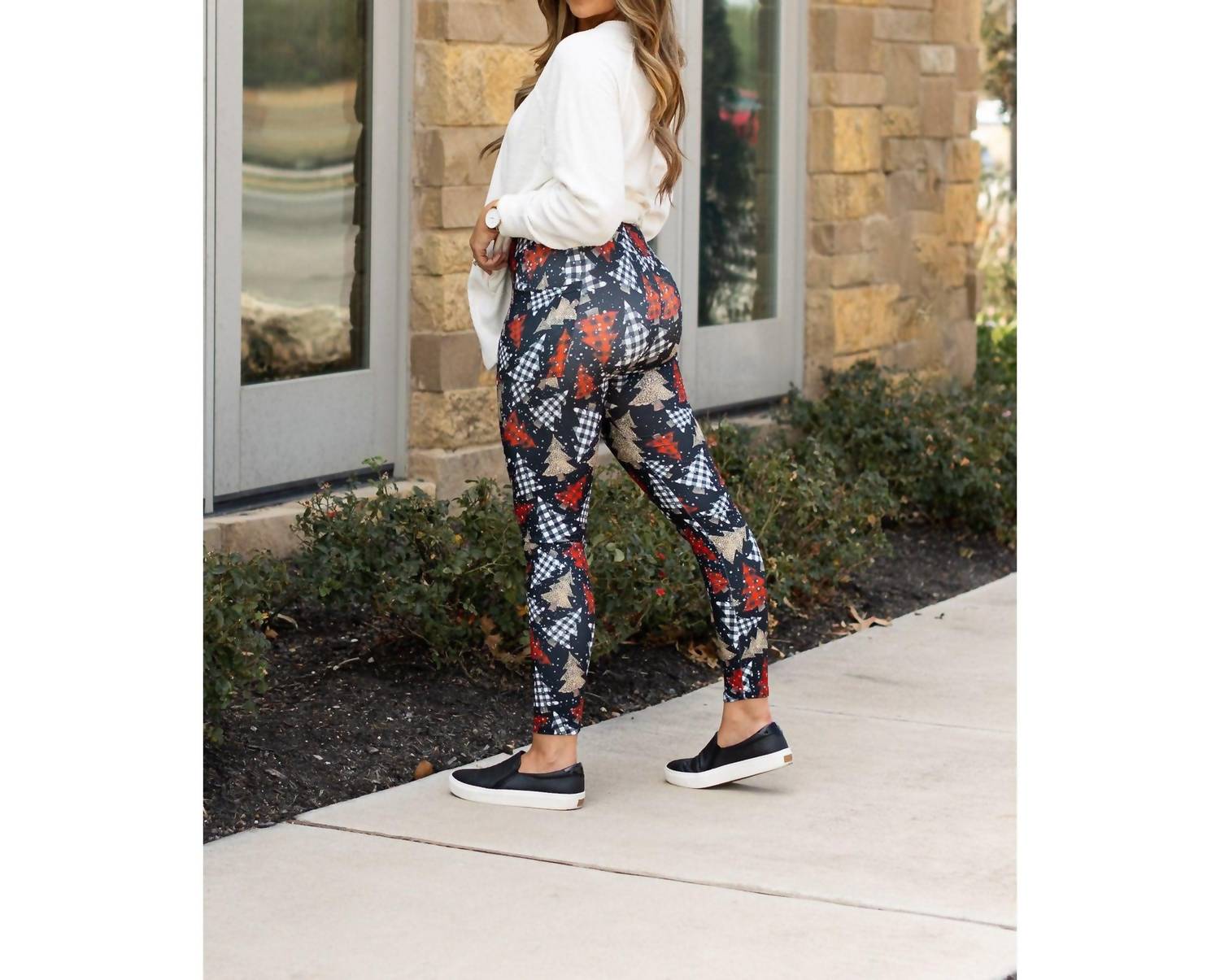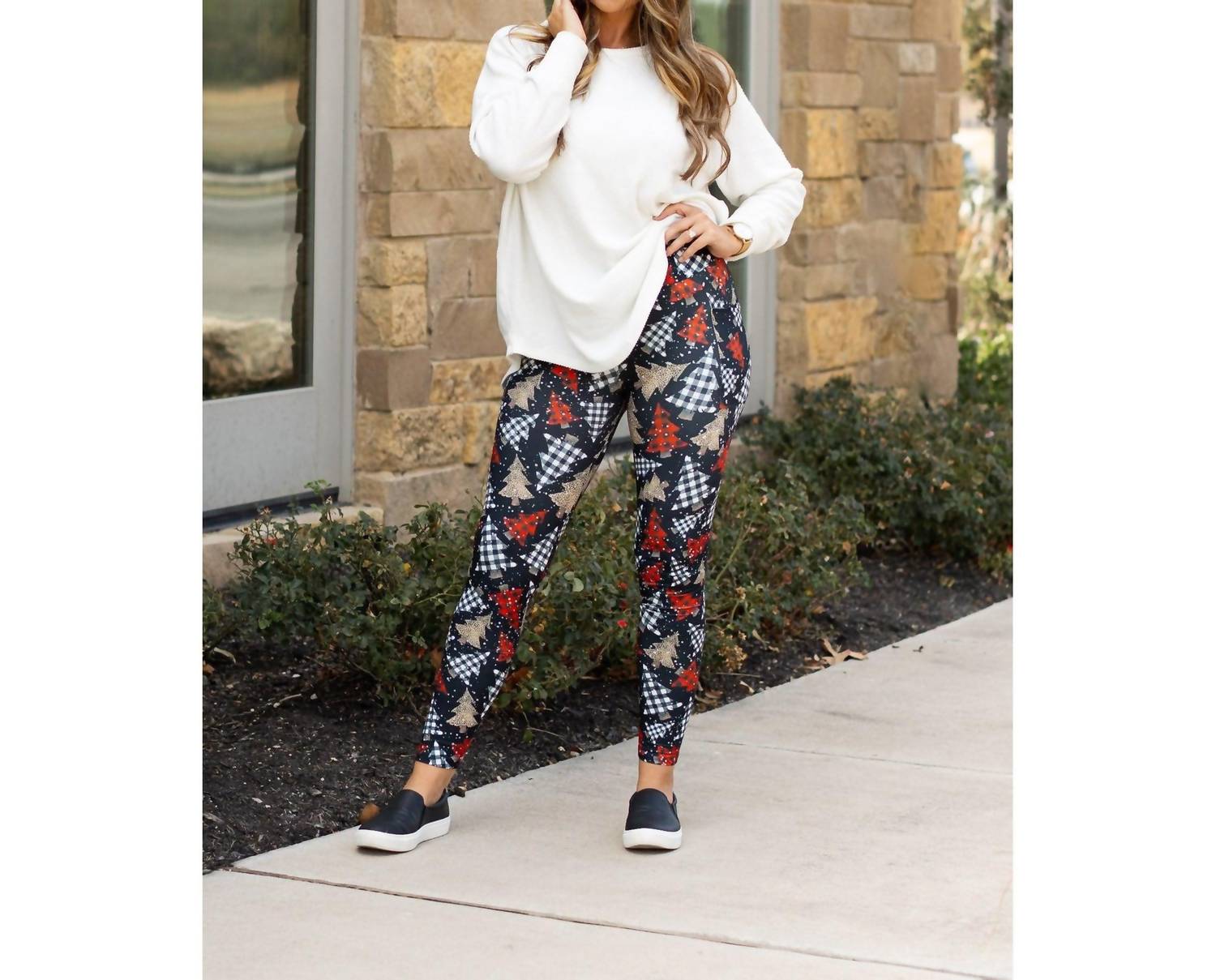 You'll be reaching for this best-selling legging all season long. Introducing the Oh Christmas Tree Leggings by Julia Rose, a festive addition to your holiday wardrobe. These slim fit, high rise leggings feature a vibrant patterned design in Black Multi, crafted from 92% polyester and 8% spandex for a buttery soft and stretchy feel. Designed with a skinny leg and functional side pockets, they offer a flattering fit perfect for pairing with seasonal sweaters or Julia Rose shackets. Closure Type: Pull on. Available in sizes S/M to 2XL/3XL, with inseam measurements ranging from 70 cm to 74 cm. Ideal for Christmas festivities and holiday parties.