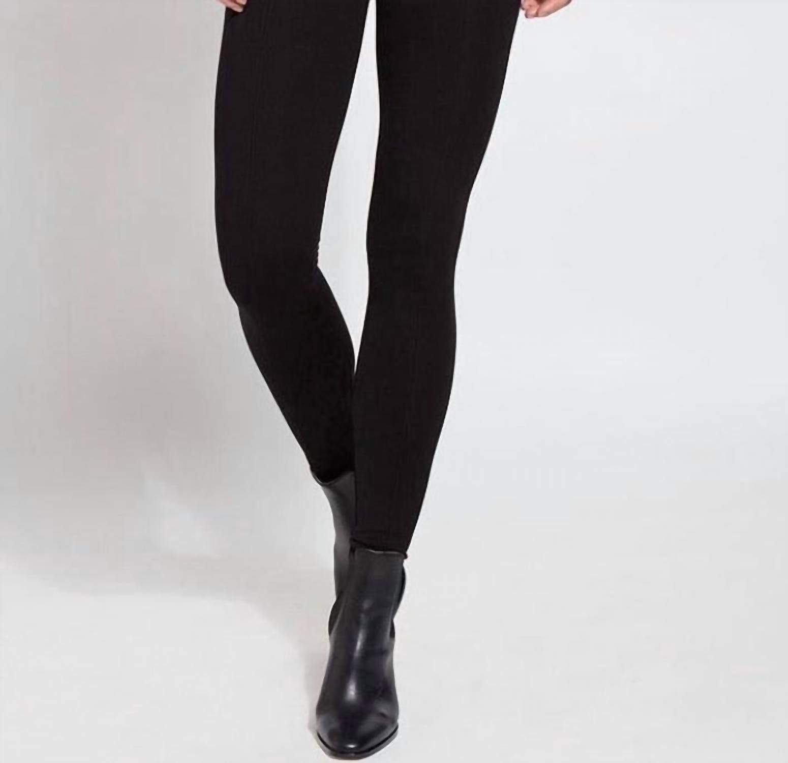Introducing the Lysse Women's Signature Center Seam Leggings, a sleek choice for any wardrobe. These full-length leggings, crafted from a mix of 67% Rayon, 28% Nylon, and 5% Spandex, offer a stretchy and resilient fit with a body-hugging silhouette. They feature a concealed signature waistband and center seaming, with a 28.5” inseam for a flattering skinny leg design. Closure: Pull-on. Care: Machine wash cold, line dry, cool iron. Model is wearing a size small (5'10" height, 32" bust, 24" waist, 34.5" hip).
