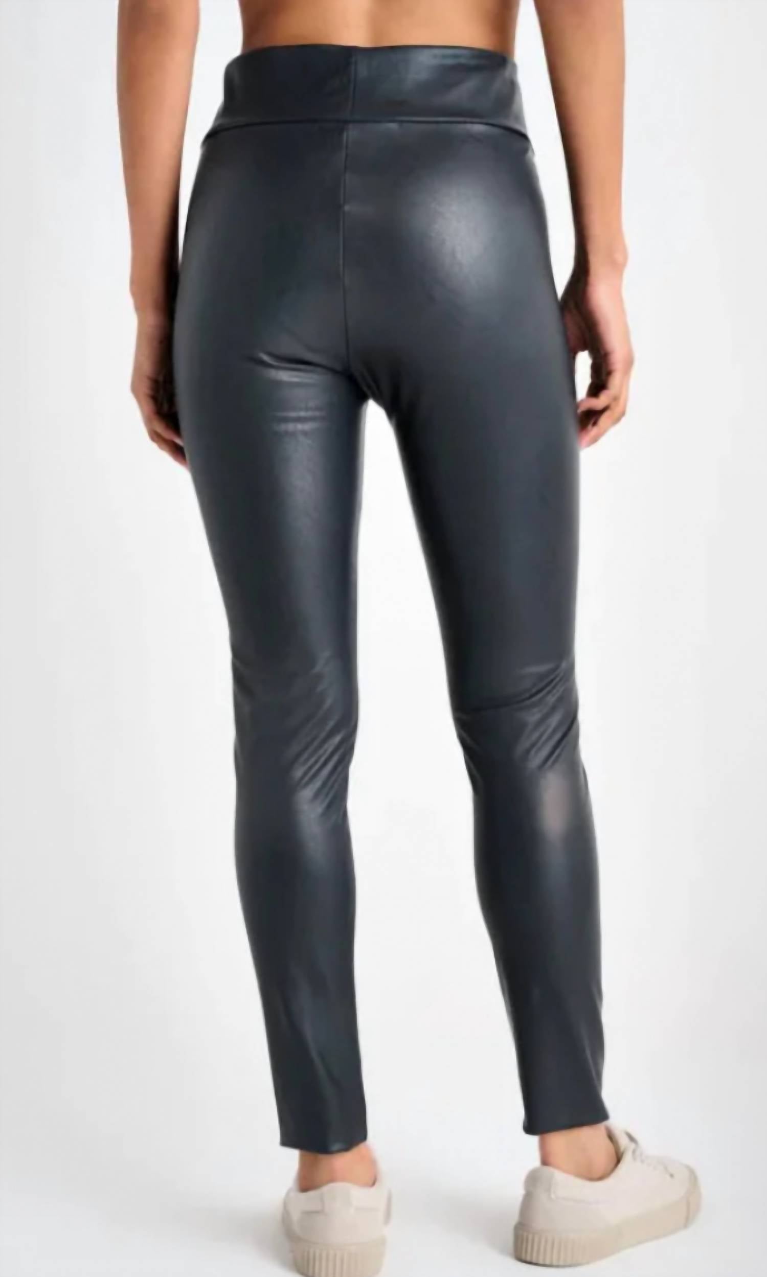 Stay comfy and cute all season long in the Vegan Leather Leggings. With a wide waistband and classic legging silhouette, these versatile bottoms look great with a button down shirt, sweater or tee. The options are endless.