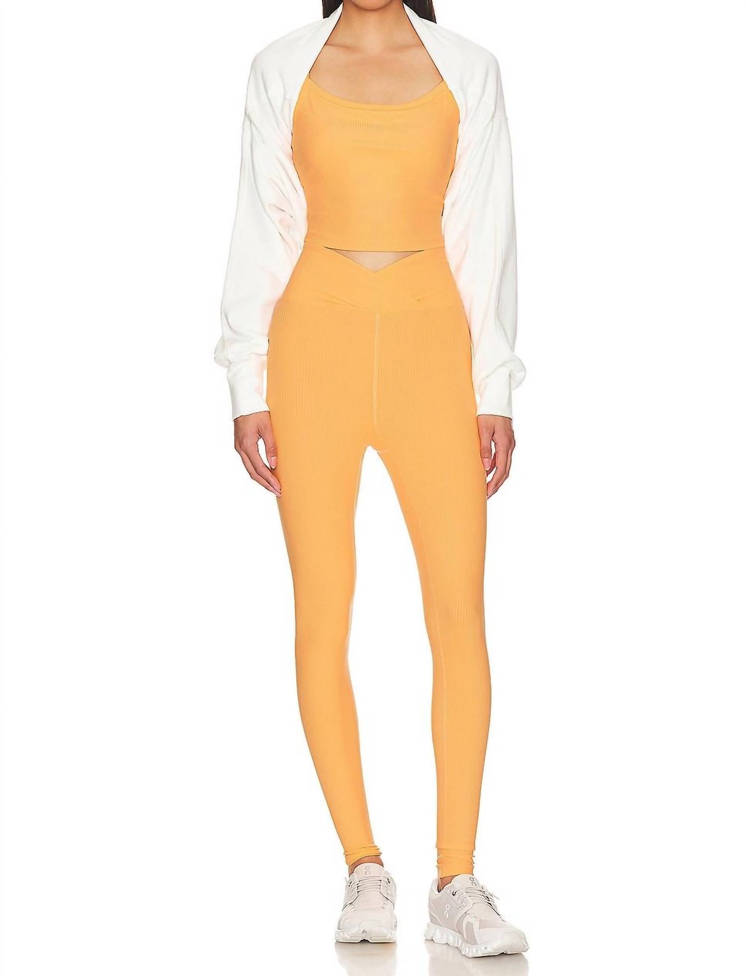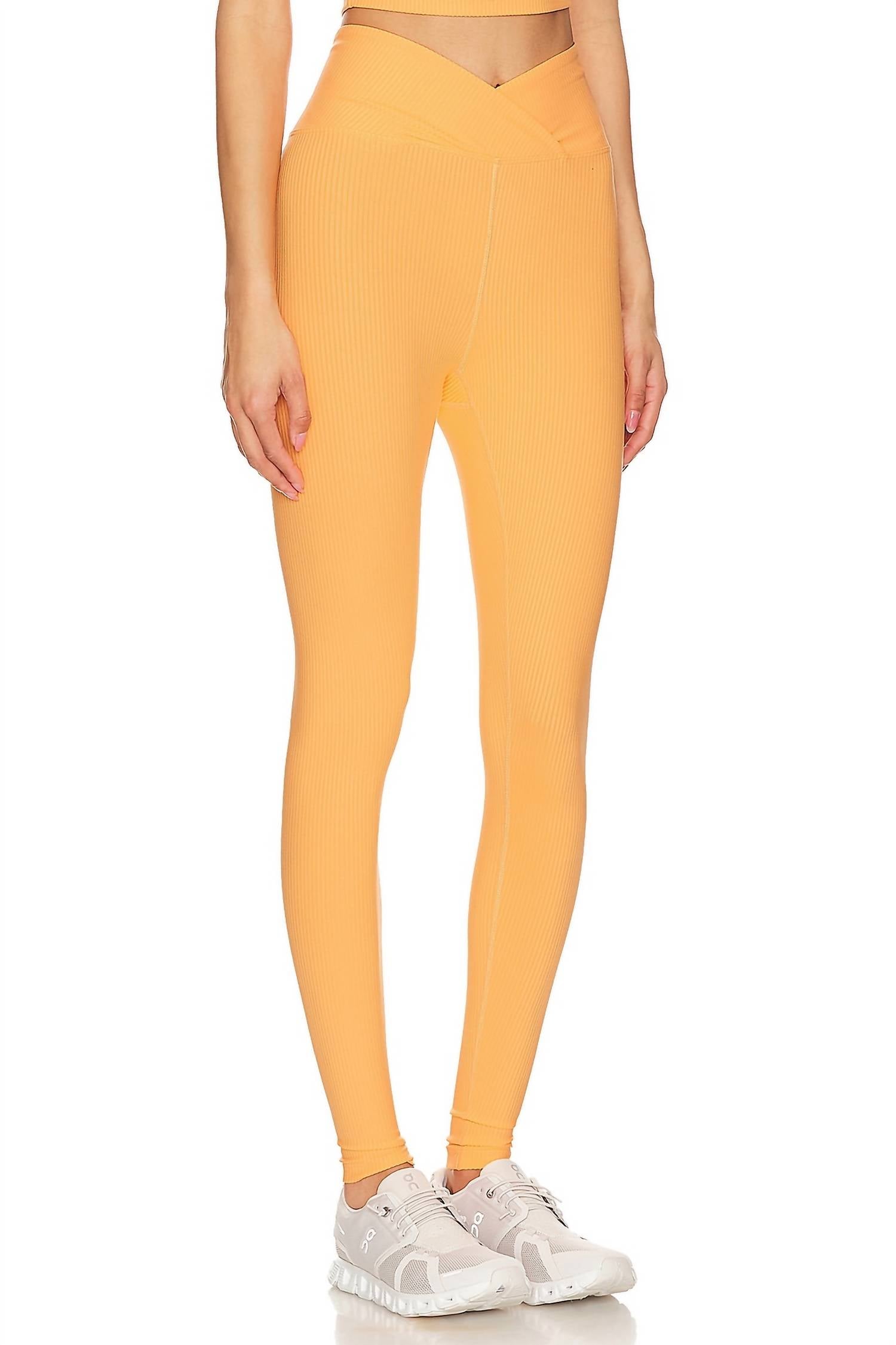 Leggings que você pode usar em qualquer ocasião. Experimente a combinação perfeita de estilo e conforto com a Legging Veronica Ribbed da YEAR OF OURS, confeccionada em um deslumbrante Apricot Crush. Esta legging de cintura alta apresenta um corte skinny e fecho pull-on, garantindo um visual elegante e sem costuras. Com uma composição de 85% nylon e 15% elastano, esta legging oferece a elasticidade ideal. Fabricada nos EUA, ela apresenta uma elegante sobrepeliz frontal e tecido canelado, adequado para uso diário. Instruções de cuidado: lavar à máquina com água fria e secar na horizontal, com uma costura interna de 67 cm.