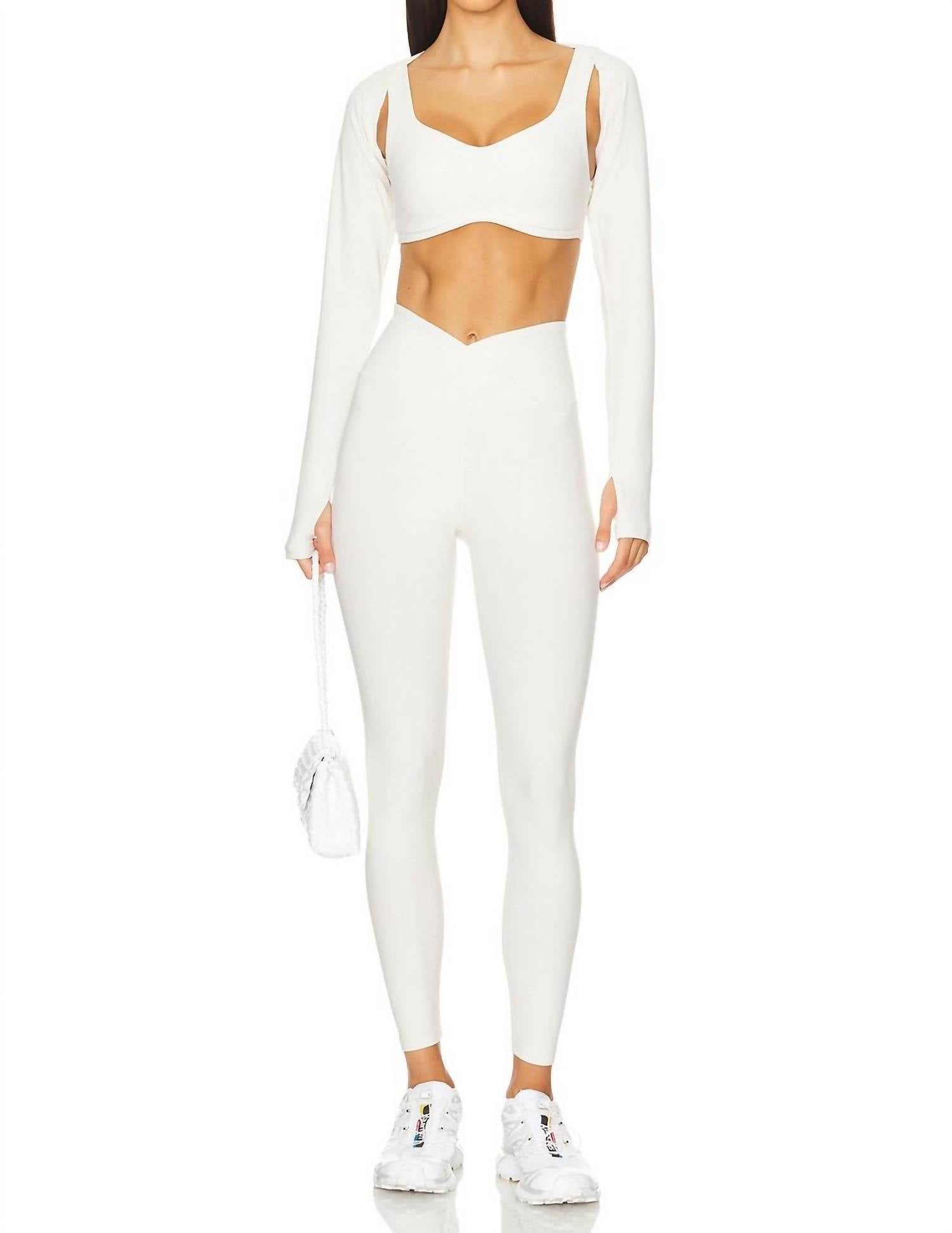 Aposte no estilo e no conforto com a Legging Stretch Veronica da YEAR OF OURS, confeccionada em 87% poliéster e 13% elastano. Fabricada nos EUA, esta legging cor marfim apresenta cintura alta com detalhe de torção e corte skinny, perfeita para quem gosta de roupas esportivas. O fecho de pressão garante facilidade de uso, enquanto a estampa sólida e o estilo esportivo oferecem versatilidade para diversas ocasiões. As instruções de cuidado recomendam lavar à máquina com água fria para manter a peça impecável, com uma conveniente costura interna de 60 cm.