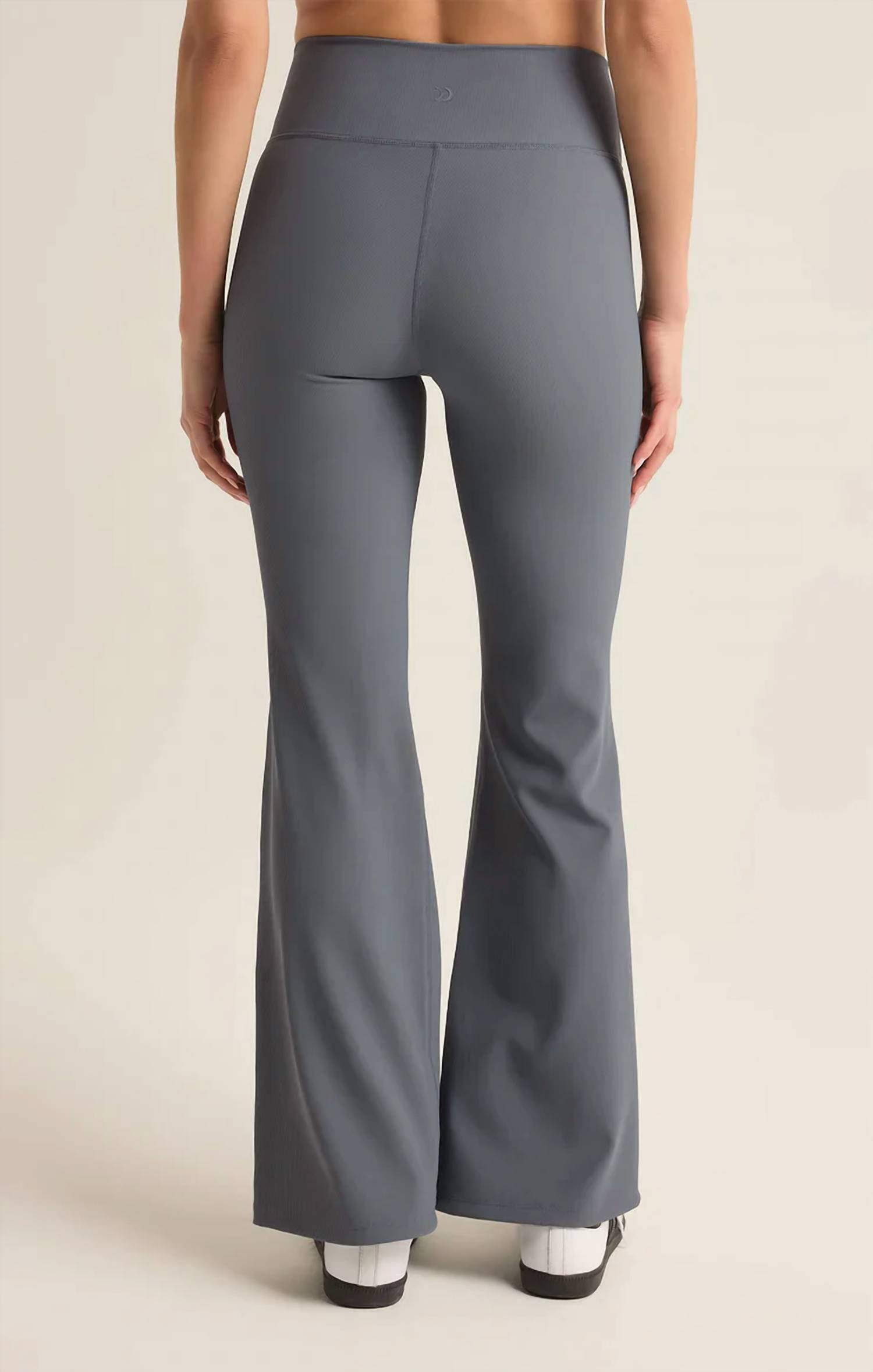 Apresentamos a Legging Flare Hit The Studio da Z Supply no elegante tom Thunder Cloud, desenvolvida para mulheres que valorizam conforto e estilo. Esta legging de cintura alta apresenta perna larga e longa com cós cruzado, ideal para uso fitness ou casual. Confeccionada em tecido Freeform Rib, composto por 75% nylon e 25% elastano, esta legging possui propriedades de absorção de umidade para maior conforto. Este modelo é lavável à máquina; basta estender na horizontal ou pendurar para secar para melhor conservação.