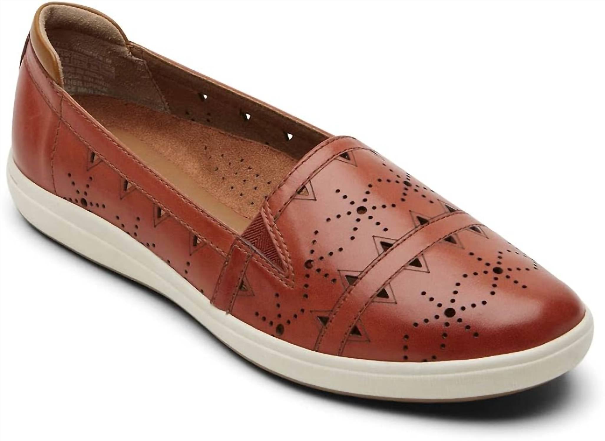 A preppy yet feminine take on the classic loafer. Step into style with the Women's Bailee Slip On by Cobb Hill, perfect for a holiday party or any casual occasion. Crafted from premium 100% Leather in a rich russet brown, these flats offer a touch of preppy charm. Originating from the USA, they feature a round toe design and a comfortable rubber sole. Please note that care instructions are not provided, so handle with gentle care.