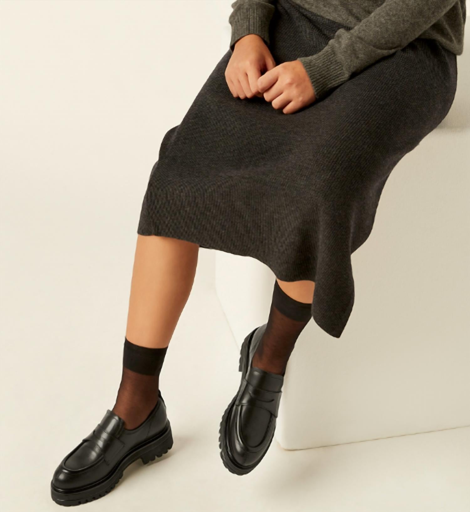 A preppy yet feminine take on the classic loafer. Step into style with the Women's Refresh Leather Penny Loafer by La Canadienne, a chic twist on the classic loafer. Crafted from breathable black leather, this shoe boasts a timeless penny slot and a sleek pull tab at the back. It features a chunky rubber lug sole for enhanced comfort and a hidden elastic band under the tongue for easy wear. With a heel height of 50mm (2") and a platform of 40mm (1.5"), this Mid Heel, Made in Italy loafer is a perfect choice for a fall dinner party or a maximalist trend statement.