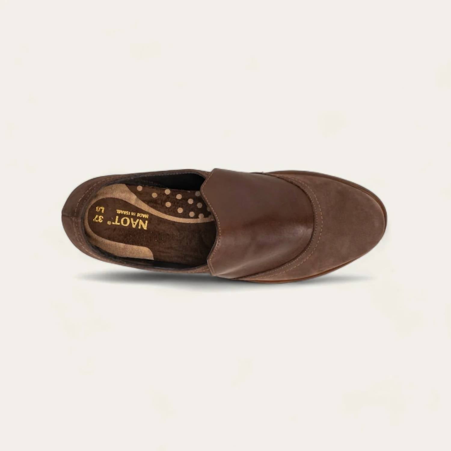 Step into elegance with the Women's Angin Leather Shoes by NAOT, perfect for both the office and casual outings. Crafted in a rich Coffee Bean Nubuck Toffee color, they feature a mix of leather, suede, and nubuck with hidden gore for an easy slip-on experience. Enjoy comfort with a removable cork and latex footbed and a slip-resistant polyurethane sole, complemented by a low 1.5" flat heel. These orthotic-friendly shoes offer a medium width and true-to-size fit, advising half sizes to size up for optimal comfort.