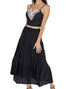 Introduce an element of quiet luxury to your summer wardrobe with the Emma Top and Maxi Skirt Set by Akalia, designed for vacation-ready elegance in classic black. This sleeveless loungewear set, featuring a chic V-neck and intricate lace detailing, epitomizes the romantic allure of summer style. Crafted from a cotton polyester blend, it's perfect for events seeking elegance and comfort. Solid in pattern, this captivating ensemble is a must-have for those seeking refined sophistication.