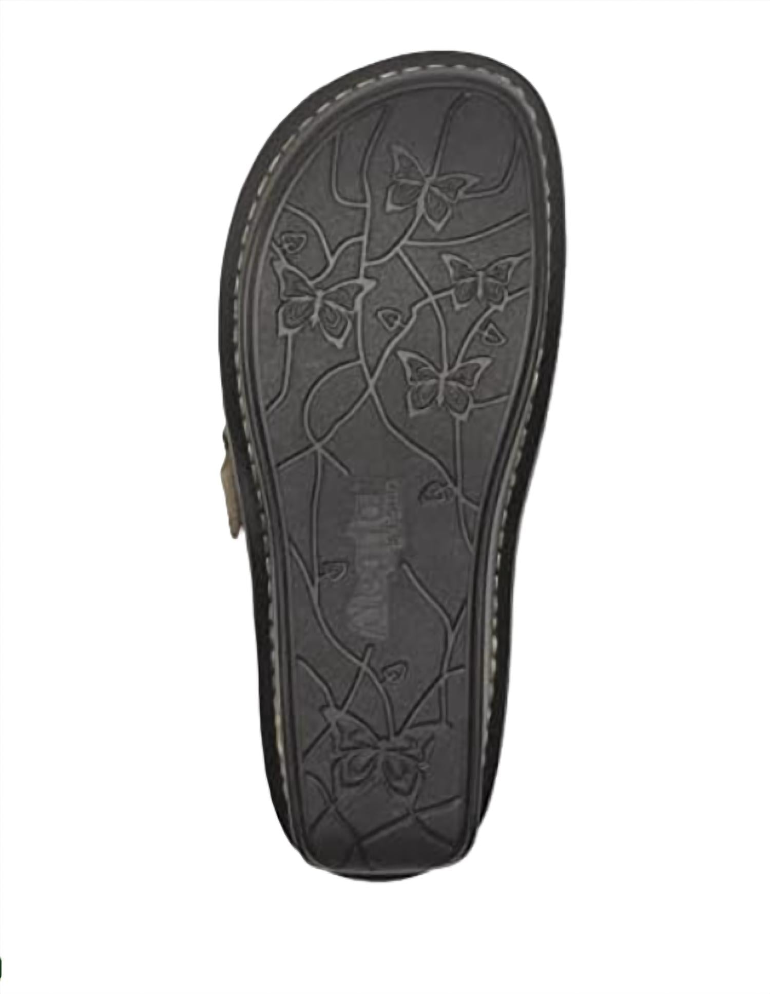 These moc-toe clogs have an adjustable buckle strap and a cupped heel lip for stability. They feature a hand-stitched suede leather footbed, which is removable and made of memory foam and cork for comfort. The heel height is 1 inch. The clogs are approved by the American Podiatric Medical Association (APMA).