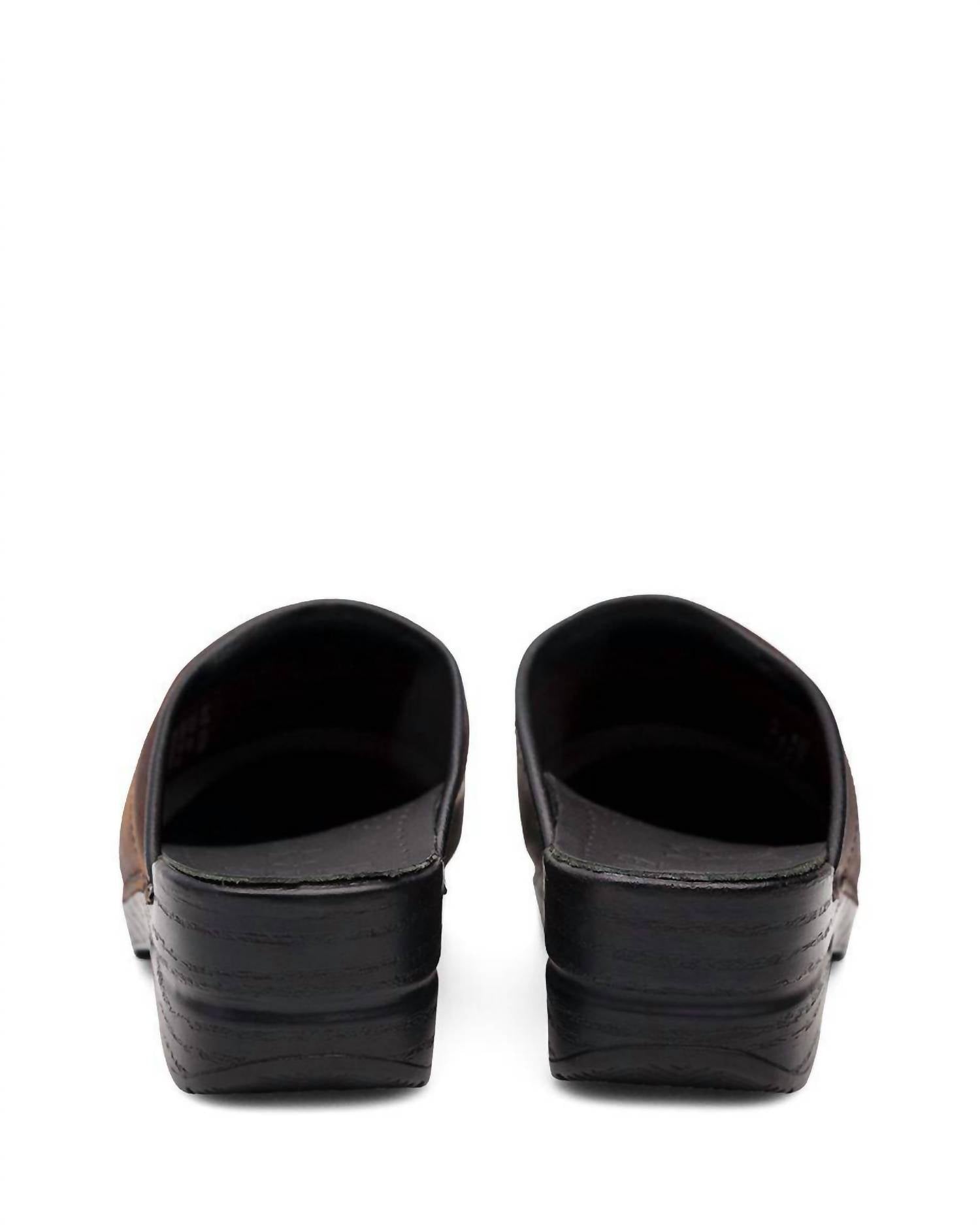 A trend that everyone is loving and this style might just be our favorite. Meet the Dansko Women's Sonja Oiled Leather Shoes, a perfect combination of style and comfort. These Antique Brown mules feature a closed round toe and a flat heel, making them ideal for a minimalist look at a dinner party or Thanksgiving gathering. The cushioned footbed contours to the foot for a personalized fit, while the durable polyurethane outsole offers superb traction and stability. A great choice for those seeking recommended support for plantar fasciitis during spring outings.