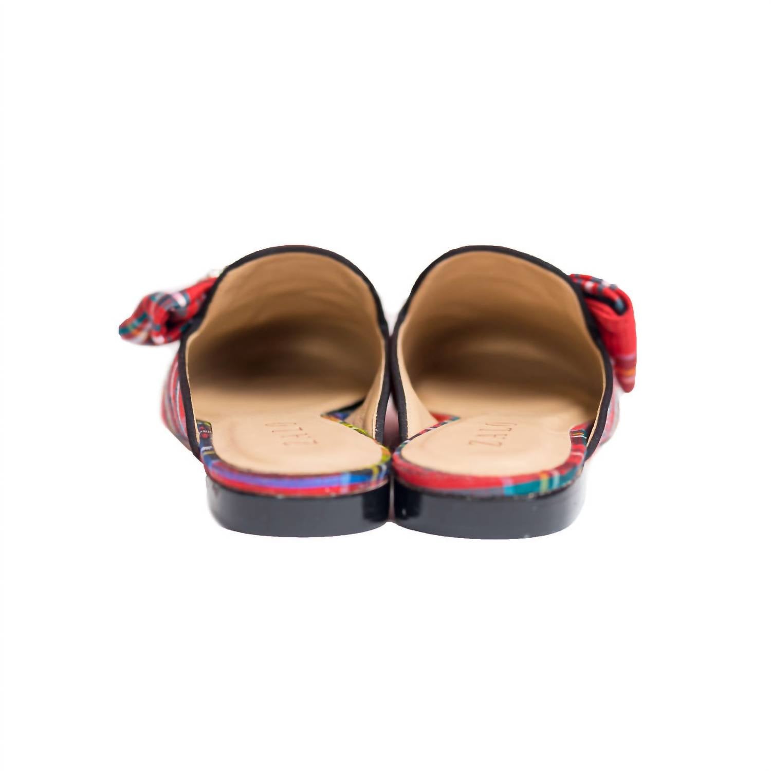 Nossa mule Cheers apresenta um broche de cristal em formato de coroa sobre um cabedal em xadrez Shantung com acabamento em gorgorão preto. Forro em couro napa para maior suporte e conforto. Salto de couro de 1,9 cm. Solado em couro.