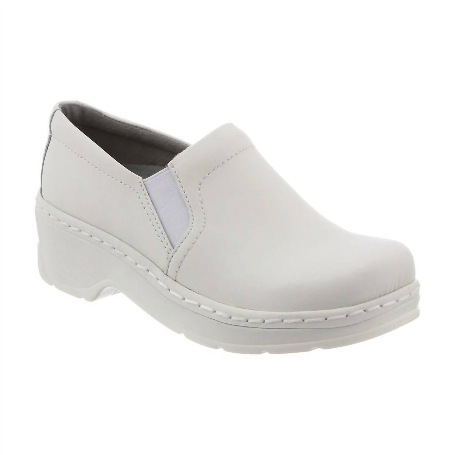 Uma tendência que todo mundo está amando e esse estilo pode ser o nosso favorito. Apresentamos os tamancos de trabalho femininos Naples Slip Resistant da Klogs Footwear, habilmente elaborados para os dias mais exigentes. Estes tamancos apresentam cabedal em couro macio com reforço lateral elástico duplo, garantindo um ajuste confortável a cada passo. Orgulhosamente fabricados nos EUA, possuem bico arredondado e parte traseira fechada para suporte adicional. As palmilhas TRUComfort® e as solas TRUBase® com solado PURGrip® oferecem resistência a deslizamentos e óleo, enquanto o design antiderrapante e o salto baixo de 4 cm proporcionam estabilidade e durabilidade.