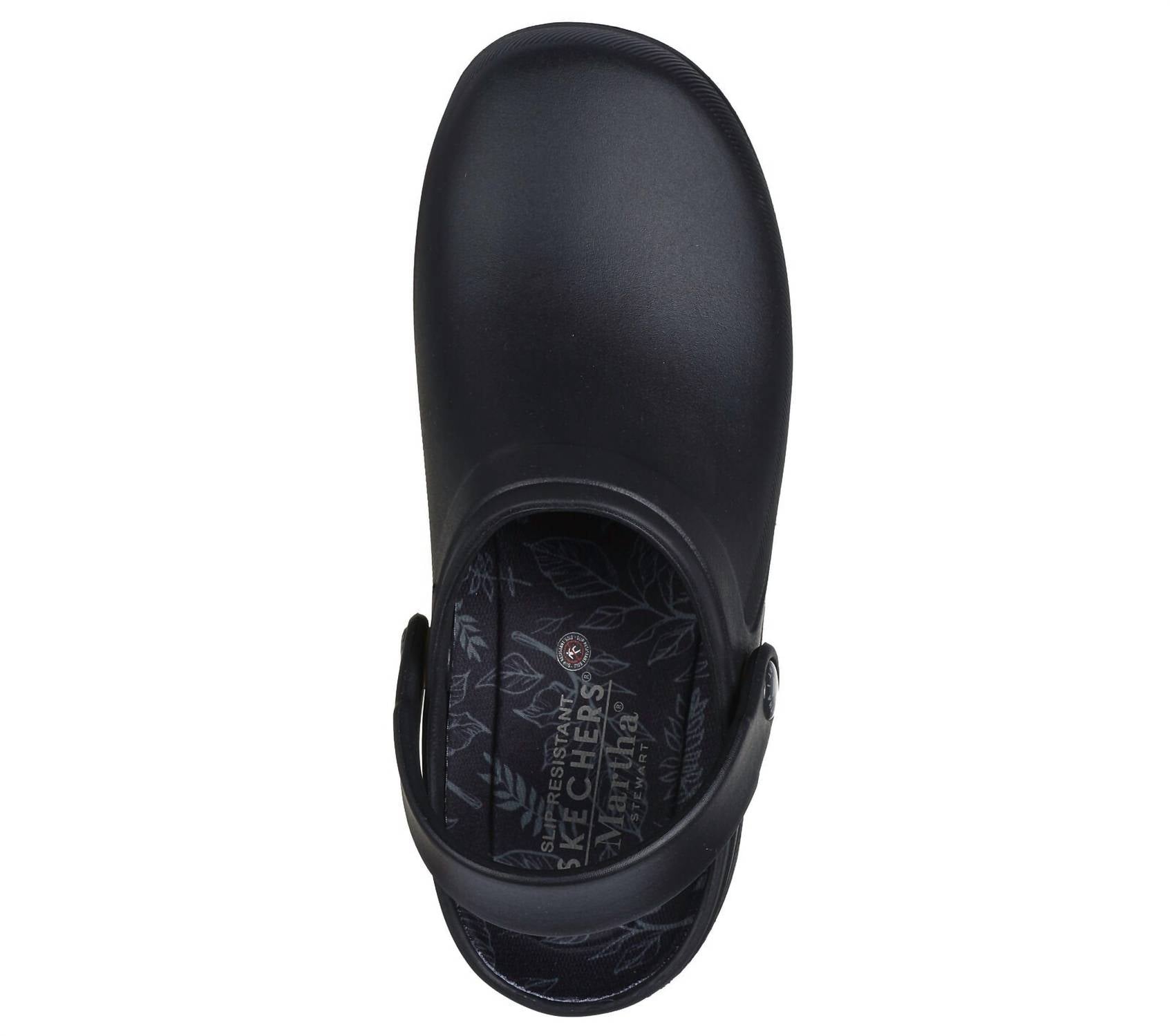 Discover the Women's Martha Stewart: Arch Fit Riverbound Garden Days Clogs by Skechers, a chic yet practical footwear option in timeless black. Perfect for summer travels and holiday festivities like the 4th of July, these minimalist clogs feature a round toe and flat heel for effortless style. Meticulously crafted with a sculpted flexible EVA upper and an Arch Fit® contoured footbed, they ensure optimal support and comfort. Ideal for women seeking both fashion and functionality.