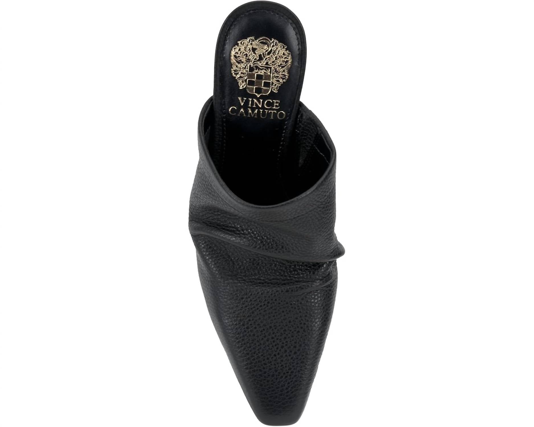 Uma tendência que todo mundo está amando e esse estilo pode ser o nosso favorito. Entre na elegância com a Mule Carlie Feminina da VINCE CAMUTO, ostentando um sofisticado design de bico fino que naturalmente se franze sobre o pé para um efeito chique. Esta mule preta apresenta cabedal em couro complementado por um forro de poliéster e palmilha acolchoada em couro sintético para maior conforto. O estilo slip-on é complementado por um solado de borracha, meia acolchoada e um elástico para melhor ajuste, tudo equilibrado em um elegante salto bloco com 7 cm de altura. Ideal para um look elegante e confortável, perfeito para a mulher moderna.