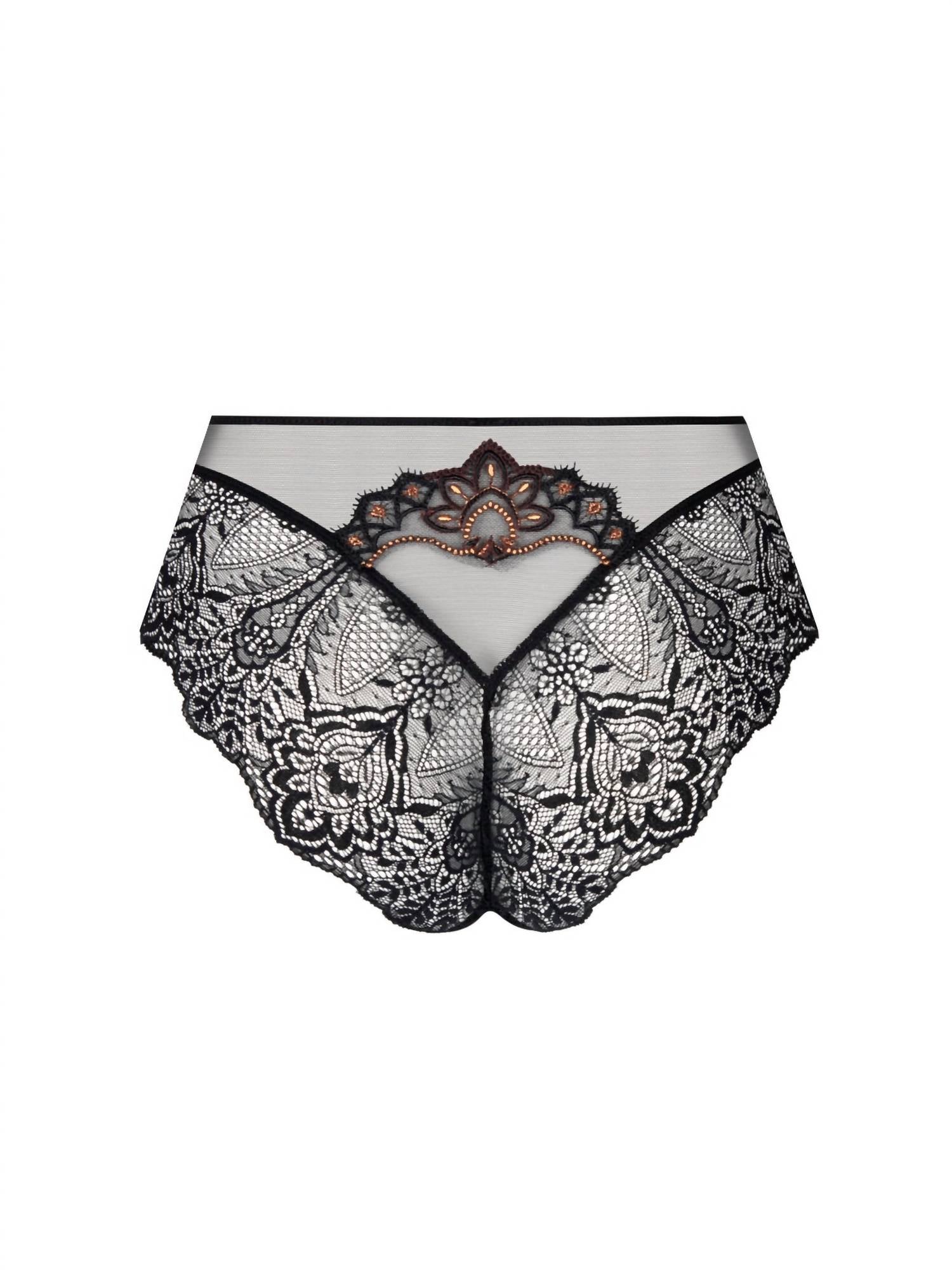 Tão confortável que você vai querer um de cada cor. Apresentamos a Calcinha Sexy Fauve Amour da Lise Charmel, uma luxuosa peça de lingerie em Ambre Panthere, criada para ocasiões especiais como o Dia dos Namorados e aniversários. Esta calcinha de cintura alta apresenta uma requintada renda laize bordada na frente com apliques de vieiras incrustados em tule e um motivo bordado na parte superior das costas, revelando levemente o bumbum. Confeccionada em 67% poliamida, 12% elastano, 11% poliéster e 10% algodão, oferece um ajuste confortável com cobertura total e um padrão texturizado. Para maior durabilidade, recomenda-se lavar à mão e evitar o uso de produtos alvejantes para melhor cuidado.