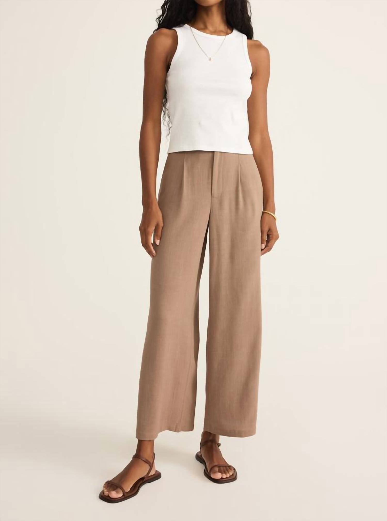 Discover the Vista Linen Pants by Z Supply, a chic choice in a solid Iced Coffee hue. Crafted from a textured linen blend with 80% viscose, these mid-rise, ankle-length pants offer a regular fit and relaxed silhouette. The pants feature convenient side seam pockets and a zip fly with button closure, complemented by a soft heavy wash for extra comfort. Care for them with a cold machine wash on a gentle cycle and line dry to maintain their pristine look.