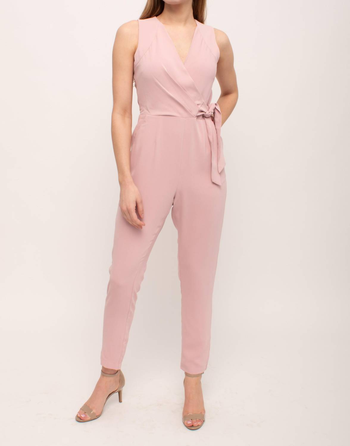 Descubra o Macacão Meghan da Adelyn Rae, uma peça sofisticada em tom Rosa-poeira que irradia elegância. Este macacão apresenta um corpete envolvente com decote em V e um laço lateral ajustável, complementado por um elegante zíper nas costas com um sutil detalhe de fechadura. Confeccionado em 100% poliéster para facilitar o uso, inclui bolsos práticos e calças retas para um caimento que valoriza o corpo. Fechamento: Fecho de amarração. Cuidados: Recomenda-se lavagem a seco. A modelo tem 1,75 m de altura, mede 81 cm de busto, 61 cm de cintura e 84 cm de quadril e veste tamanho P.