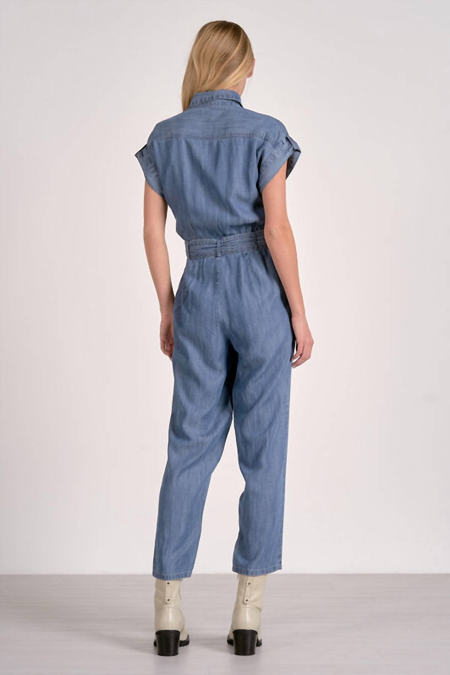 The perfect outfit choice when you you need something quick to throw on and still want to look efforlessly cool. Upgrade your style with the ELAN Jumpsuit Short Sleeve Tie Belt in a trendy Blue Dark Wash, perfect for a range of occasions. This women's solid-pattern jumpsuit features short sleeves and a flattering tie belt at the waist, ideal for enhancing your silhouette. Made for both comfort and chic appearance, it includes convenient pockets and a button closure. Tailored for the fall season with 90s fashion in mind, this piece is a must-have for holiday parties and Thanksgiving celebrations.