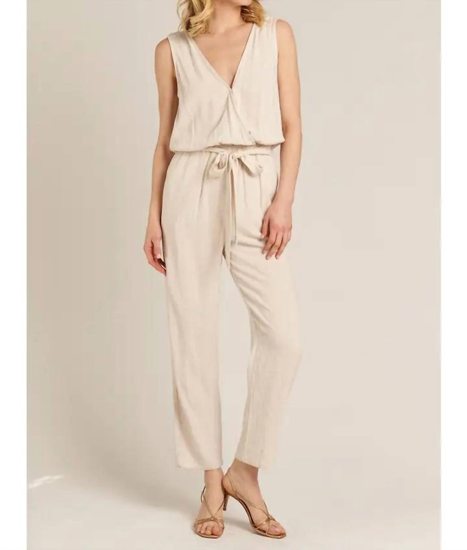 Vista e vá! Revele elegância sem esforço com o Macacão com Cinto Fae da EN CREME, uma adição chique a qualquer guarda-roupa. Esta peça sem mangas, em cor natural, apresenta um decote em V elegante na frente e nas costas, e é acentuada por um cinto de amarrar. Confeccionado em uma mistura de 70% rayon e 30% linho, com forro 100% algodão, este macacão de cintura alta oferece um ajuste confortável com pernas retas e bolsos práticos. Fabricado na China, combina perfeitamente com a praticidade de um modelo pull-on e é melhor conservado lavando à mão. A modelo tem 1,73 m e veste tamanho P.