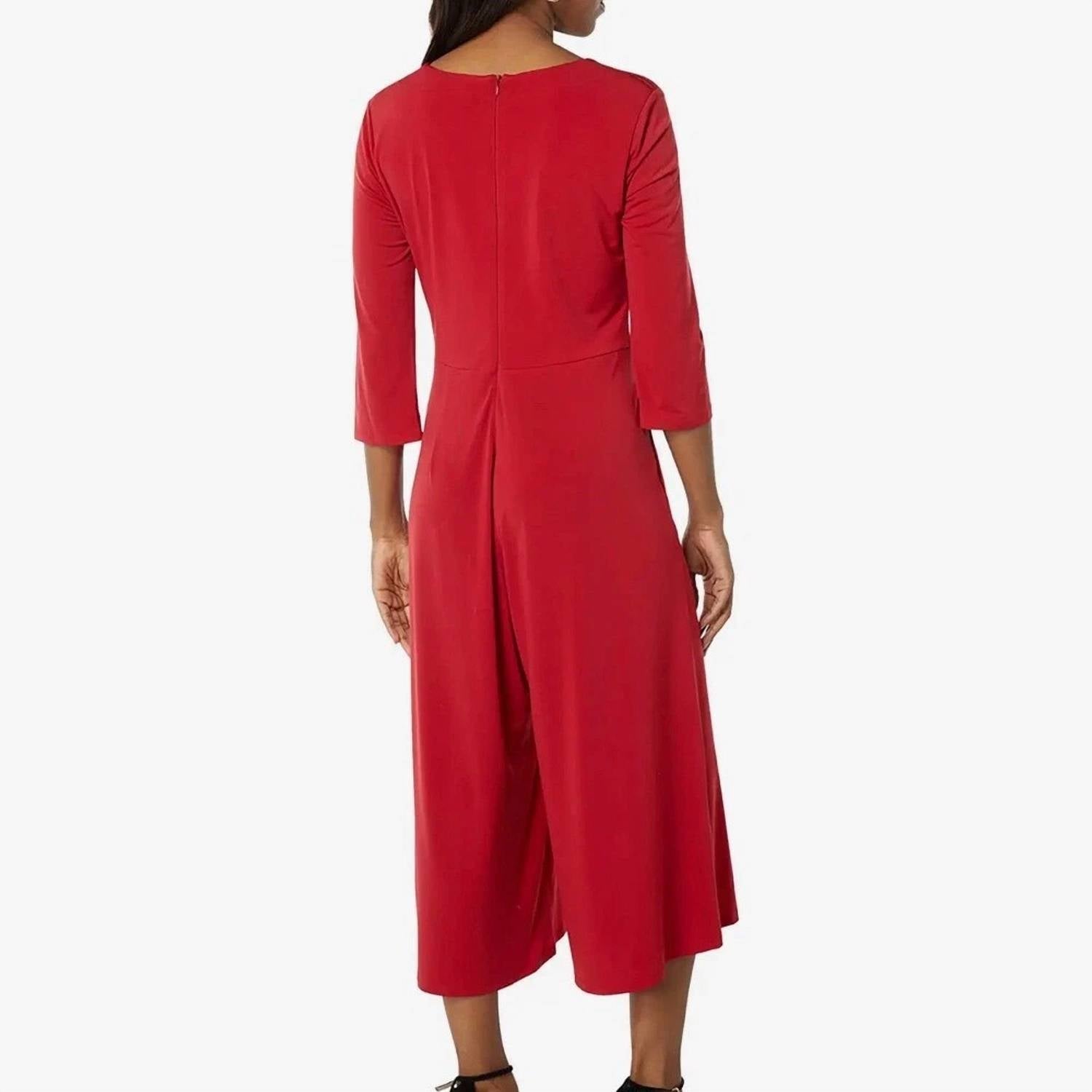 Apresentamos o Macacão Erys da LONDON TIMES, uma adição chique ao seu guarda-roupa de primavera em um vermelho vibrante. Confeccionado em 95% poliéster e 5% elastano, este macacão oferece um decote em V elegante e detalhes no corpete franzido. O design de pernas largas, complementado pela praticidade dos bolsos, o torna moderno e funcional. Fechamento em zíper. Lavar à máquina e secar na secadora.
