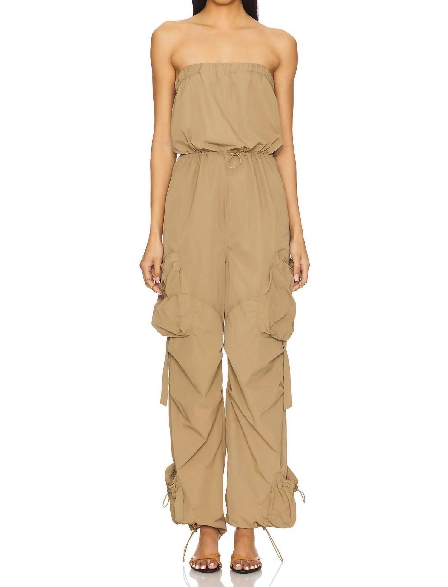 Vista e vá! Apresentamos o Macacão Kylo da Steve Madden, uma peça estilosa e despojada em carvalho buff para a mulher moderna. Feito em 100% nylon, este macacão apresenta um estilo prático de vestir, com decote elástico e cintura com cordão. Possui tecido ripstop de peso médio e práticos bolsos cargo nas laterais, com cordões ajustáveis adicionais e um único bolso traseiro aplicado. Fabricado na China e fácil de cuidar, com instruções de lavagem à máquina em água fria, este macacão mede aproximadamente 135 cm do decote à bainha, com 51 cm de largura no joelho, que se estreita para 41 cm na abertura da perna.