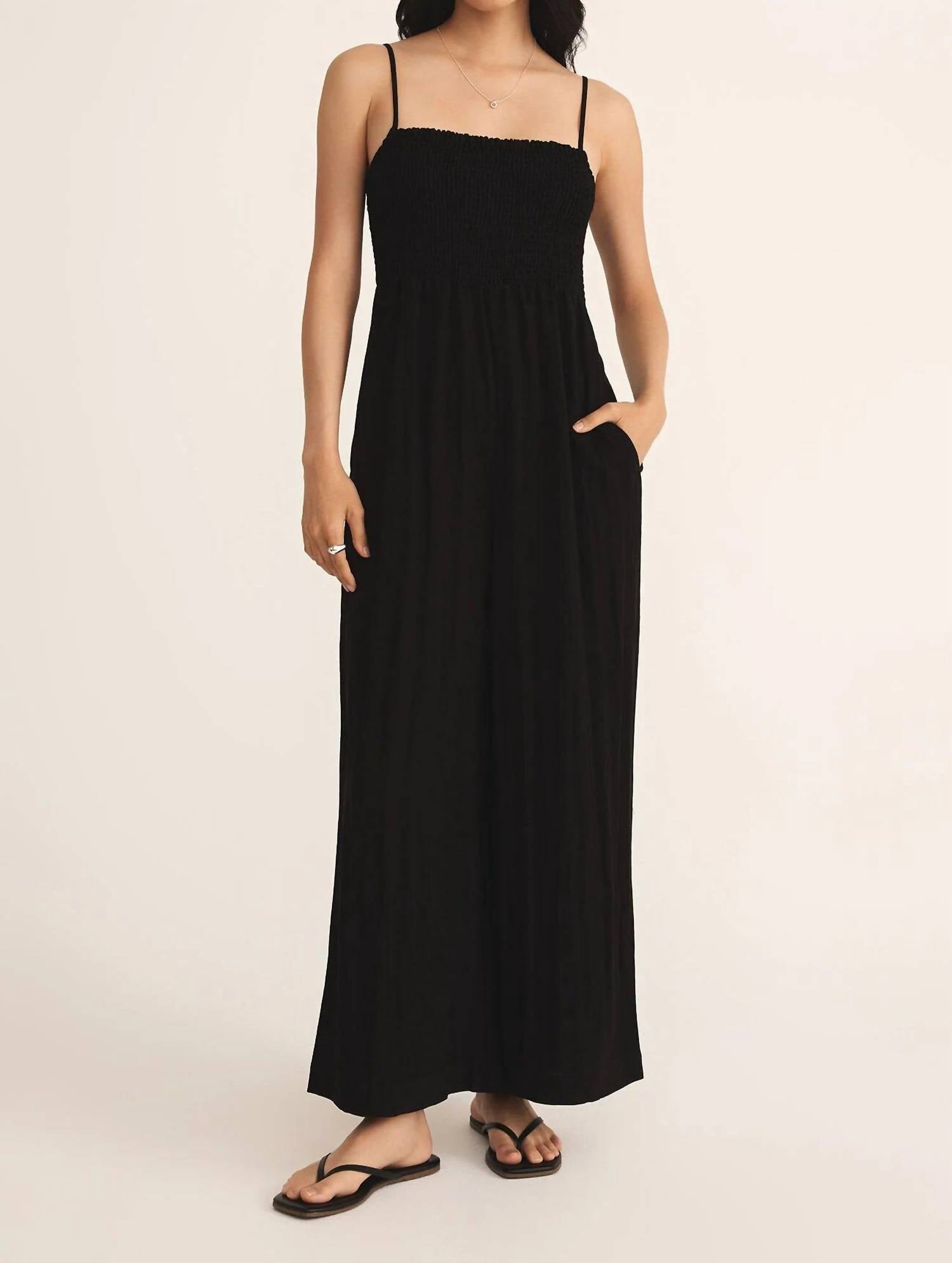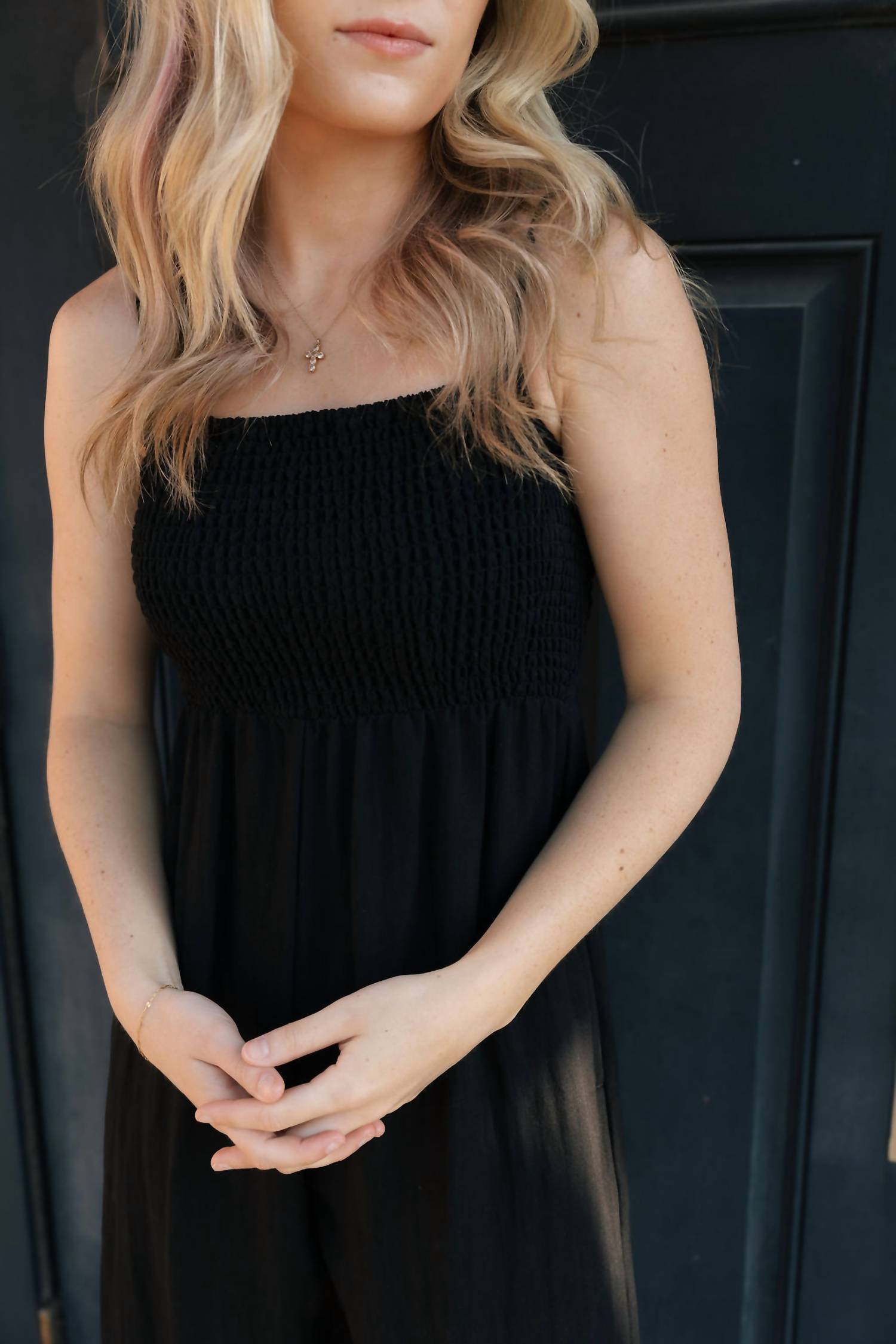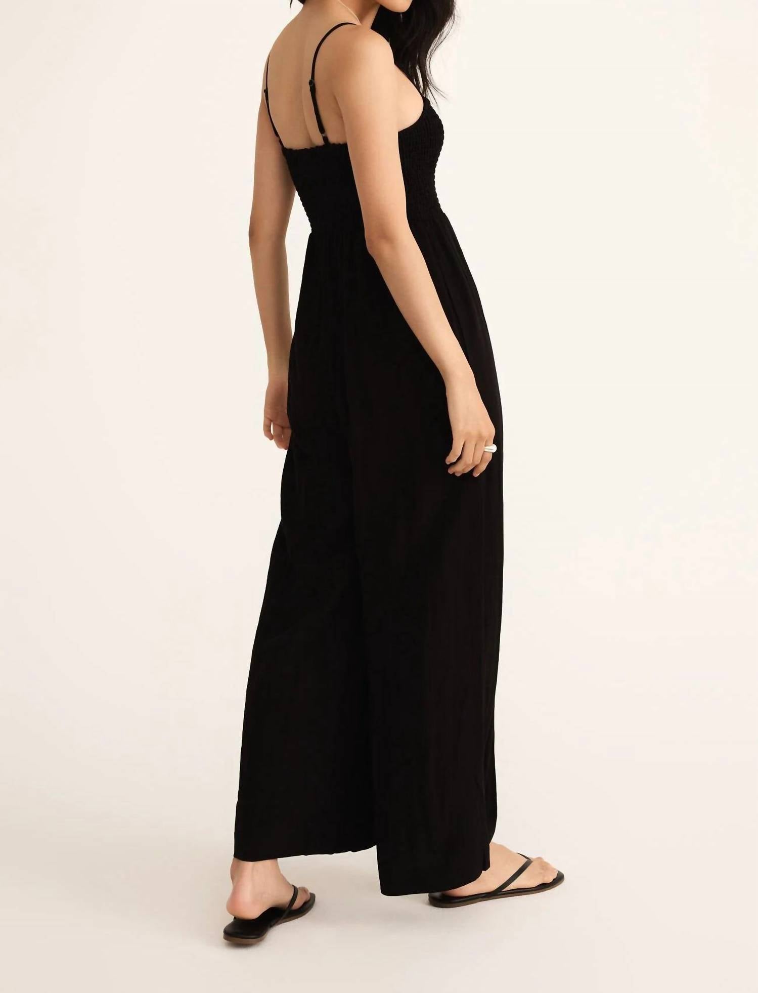 Descubra o Macacão Beachside da Z Supply, criado para elegância e conforto sem esforço. Este macacão de pernas largas em preto liso possui alças ajustáveis, um top franzido e um decote quadrado para um ajuste fiel ao tamanho. Composição: 90% rayon e 10% nylon. O comprimento da peça é de 125 cm, com busto elástico de até 71 cm, oferecendo bolsos laterais práticos e fecho de pressão. Instruções de cuidado: Lavar à mão e secar na horizontal. Perfeito para um dia de praia ou ocasiões mais formais de verão.