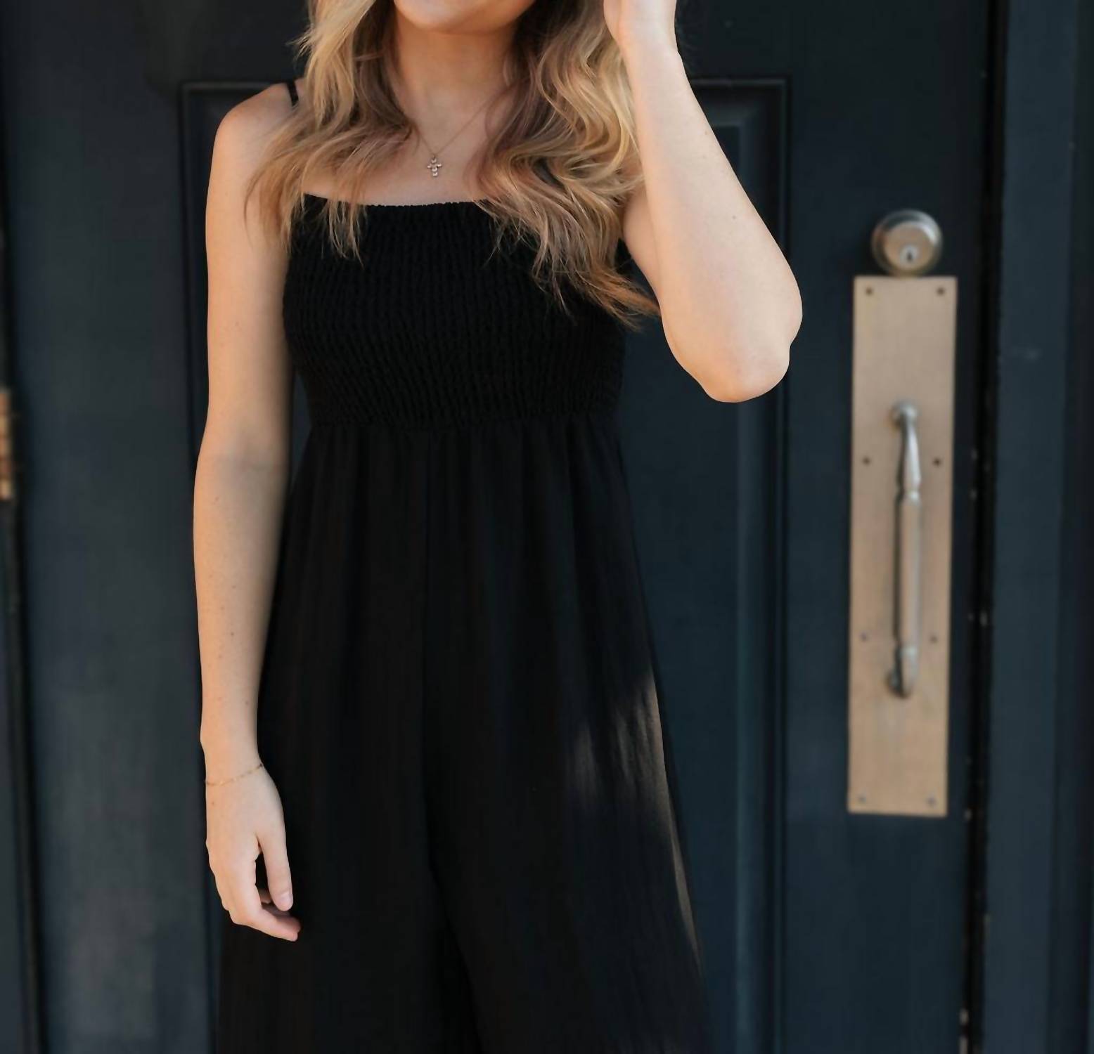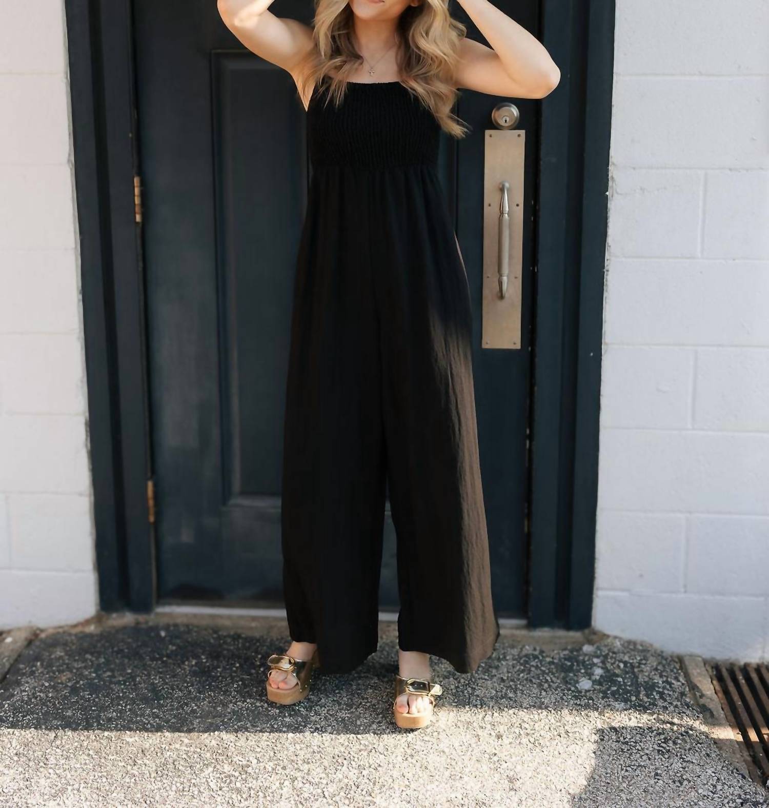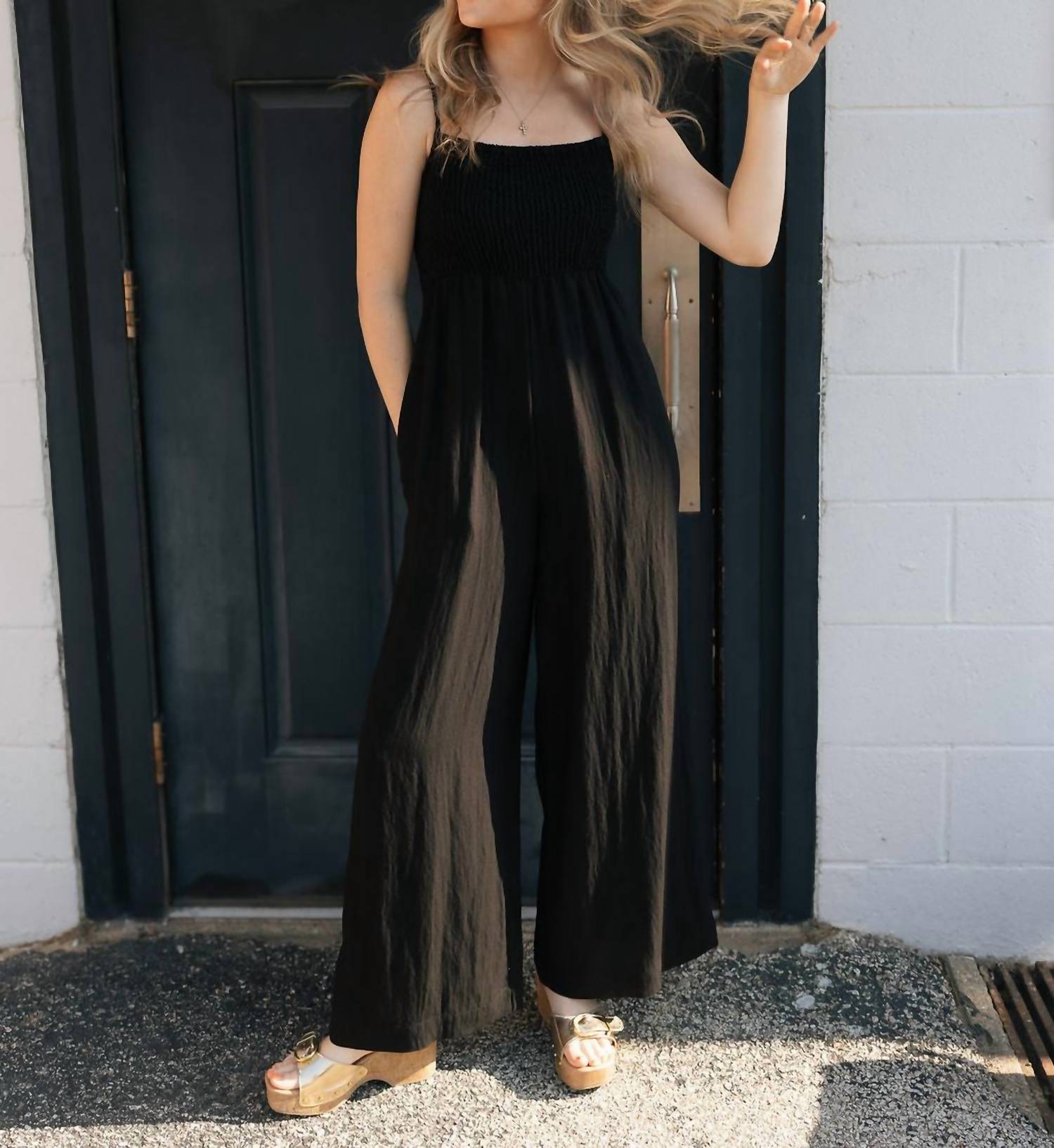 Descubra o Macacão Beachside da Z Supply, criado para elegância e conforto sem esforço. Este macacão de pernas largas em preto liso possui alças ajustáveis, um top franzido e um decote quadrado para um ajuste fiel ao tamanho. Composição: 90% rayon e 10% nylon. O comprimento da peça é de 125 cm, com busto elástico de até 71 cm, oferecendo bolsos laterais práticos e fecho de pressão. Instruções de cuidado: Lavar à mão e secar na horizontal. Perfeito para um dia de praia ou ocasiões mais formais de verão.