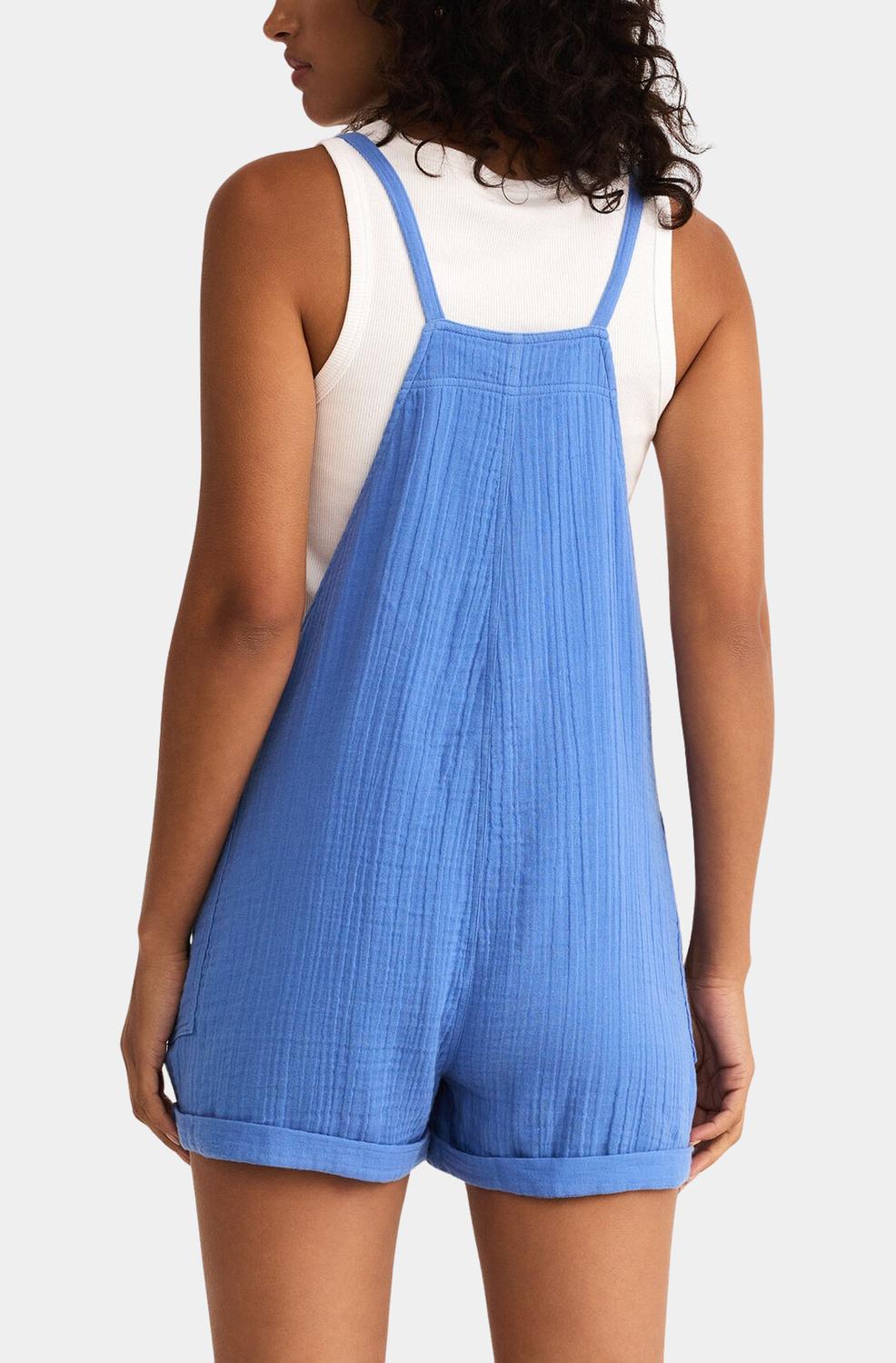Step into playful elegance with the Montague Romper by Z Supply in a chic Bay Blue hue. This sleeveless piece offers adjustable straps and a square neckline for a unique twist on a summer classic. Crafted from 100% Cotton Gauze, it's designed for comfort with side pockets and a trendy pull-on closure. Made under fair working conditions in China, this romper is machine washable and ideal for a minimalist dinner party look. Model is wearing a size small, and it runs true to size.