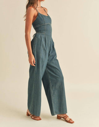 Miou Muse - Lace-up Washed Denim Jumpsuit