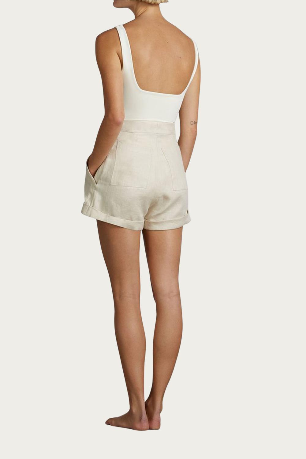Coloque sua camiseta favorita dentro deste short de cintura alta para uma sensação mais casual e descolada. Cintura de 35 cm, costura interna de 5 cm, abertura de perna de 66 cm. Fabricação: 100% linho sarja. Cuidados: Lavar à máquina com cuidado, secar no varal ou lavar a seco.