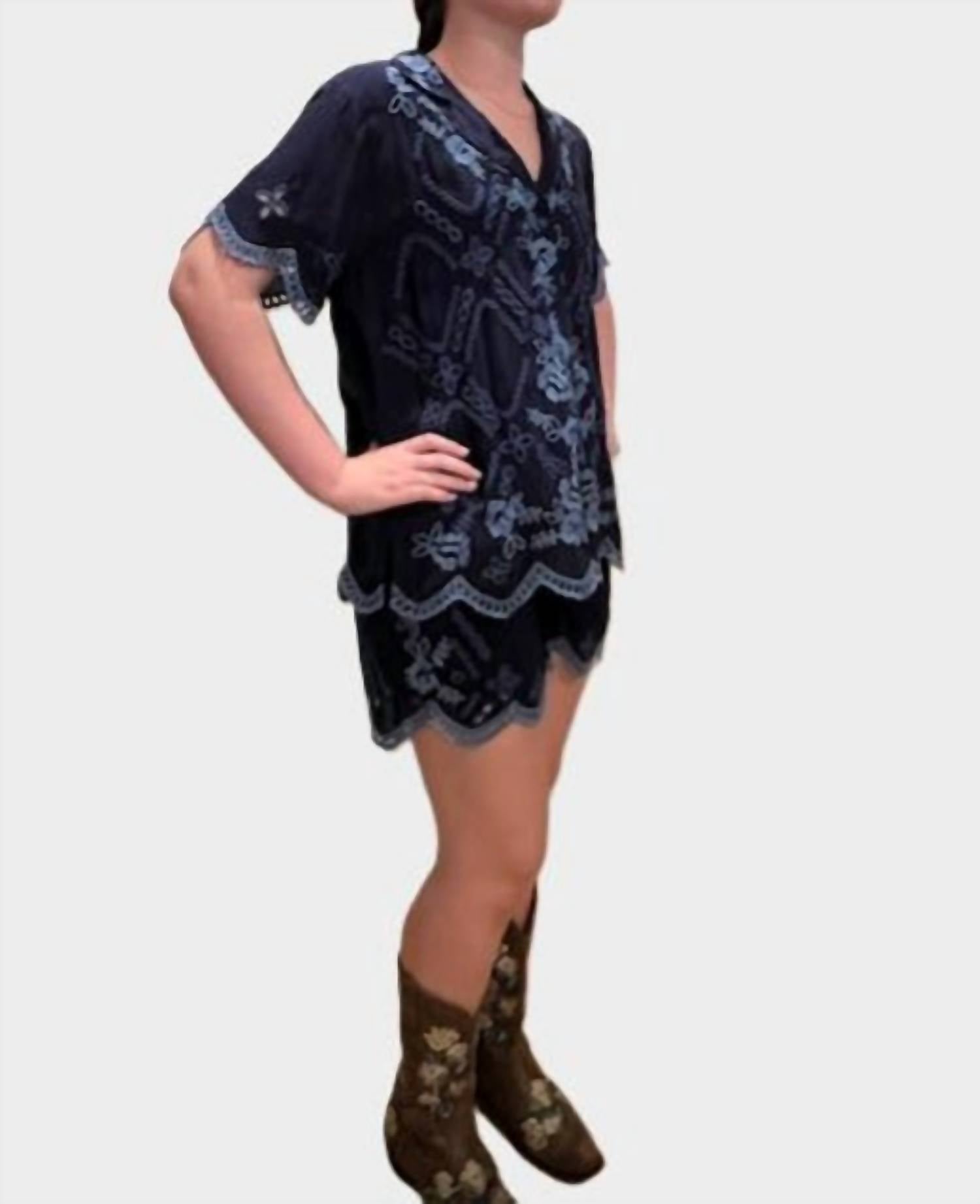 The go-anywhere and do-anything skort that you'll love to live in. Crafted from a lightweight fabric, the 'Tempest Shorts in Santi' from Johnny Was are embellished with contrasting embroidery at the hem and at the pockets. Featuring slip pockets at the hips and lined throughout, pair with the 'Chryssie Camp Shirt in Santi' and beaded sandals for a resort-inspired look. The Model is 5'4" and wearing a size Small. Machine Wash